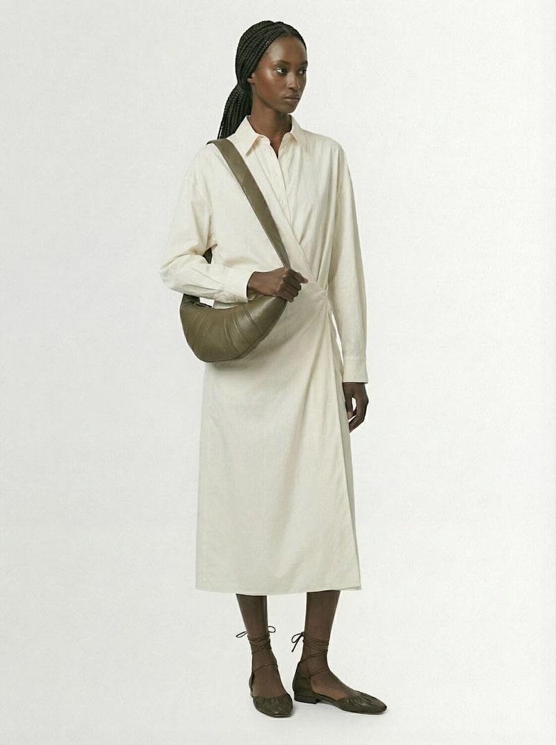 Croissant小号柔软纳帕皮革单肩包 - 深卡其色 - 女士 - Lemaire - 固定式肩带.