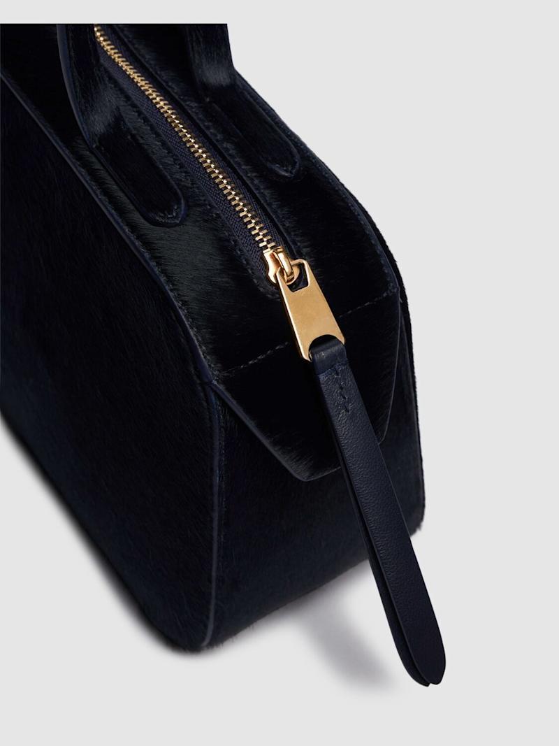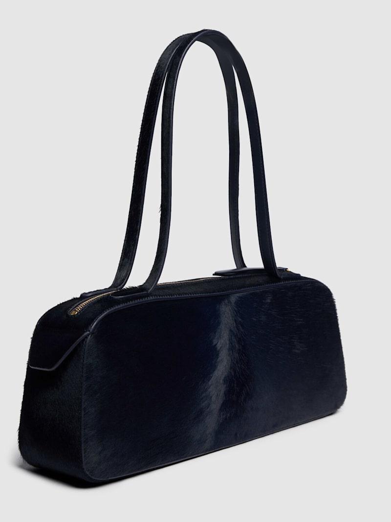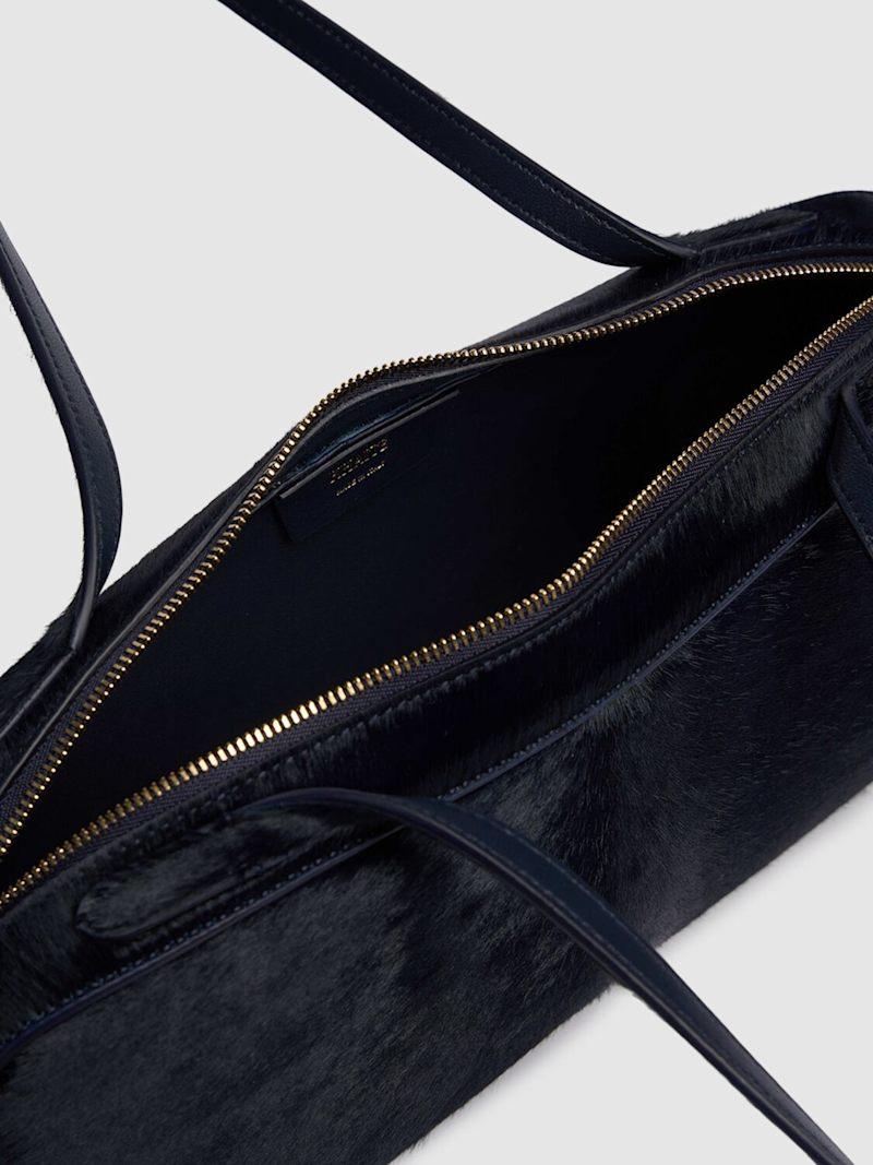 Simona带毛皮革单肩包 - 午夜蓝 - 女士 - Khaite - 肩带垂直高度:21厘米.