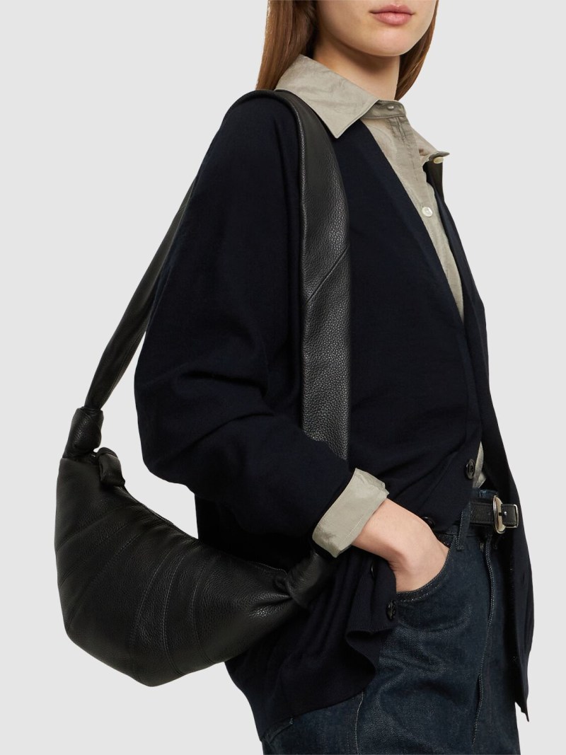 Croissant小号粒面皮革单肩包 - 黑色 - 女士 - Lemaire - 固定式肩带.