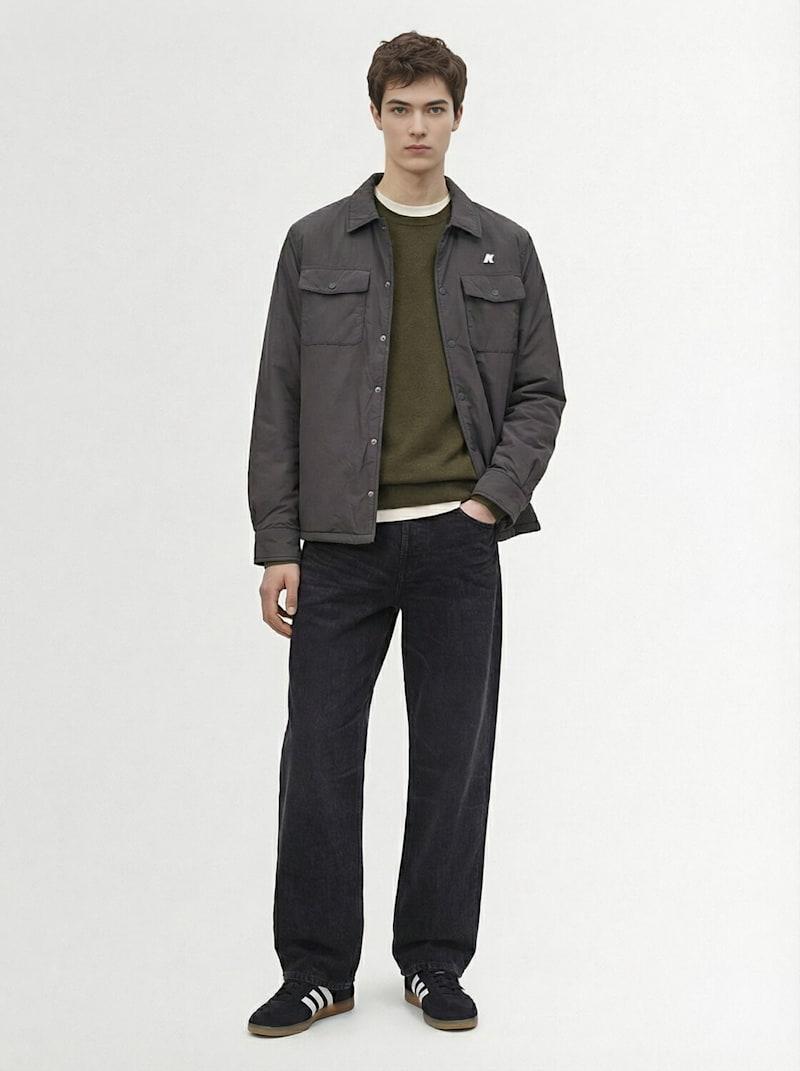 Umbert保暖尼龙衬衫式夹克 - Grey Shadow Dk - 男士 - K-Way - 正面纽扣开合.