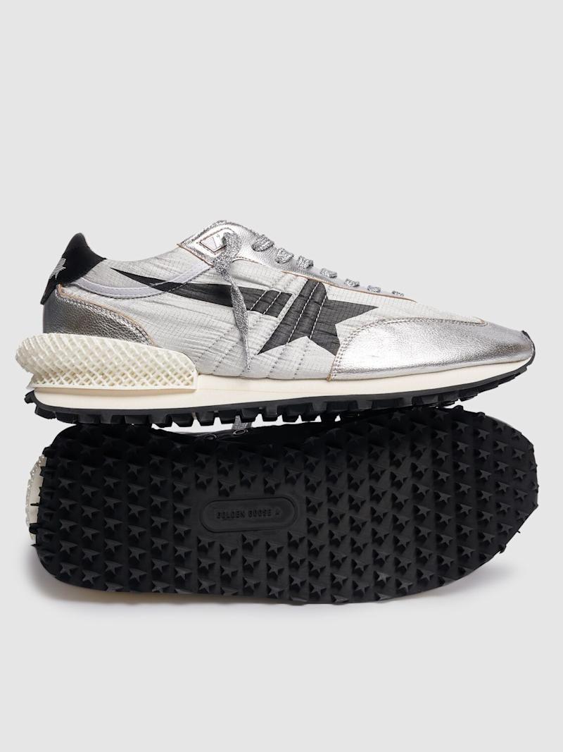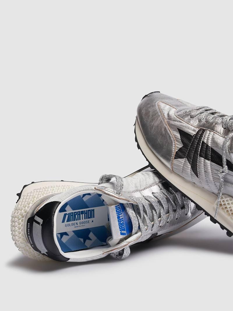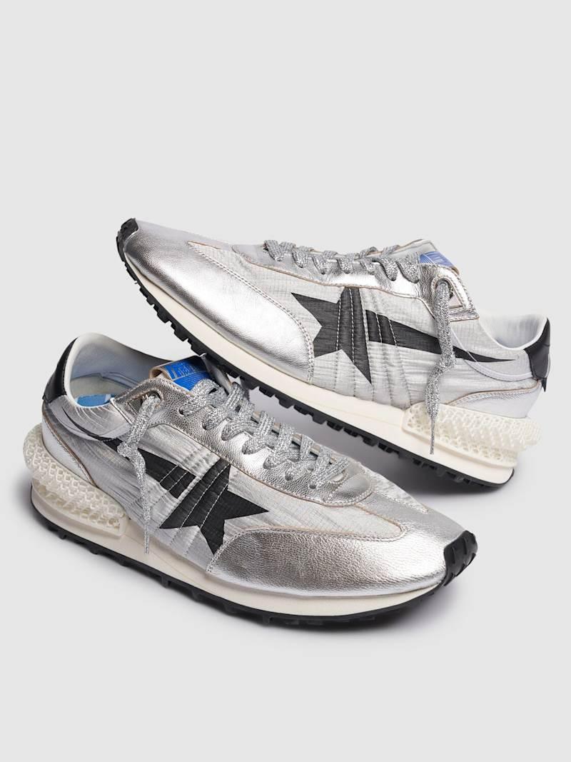 Running Marathon尼龙运动鞋 - 银色/黑色 - 男士 - Golden Goose - 正面系带开合.