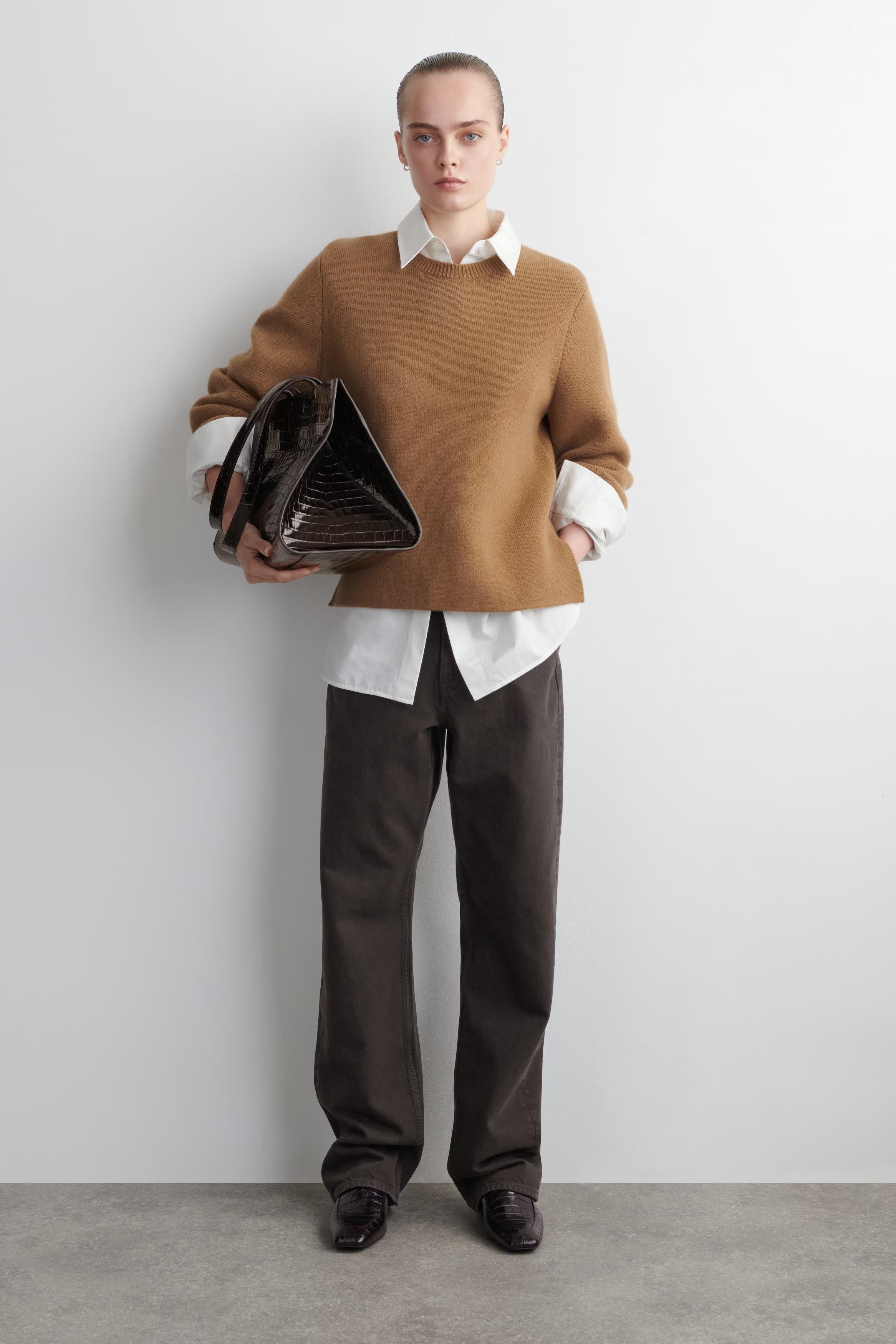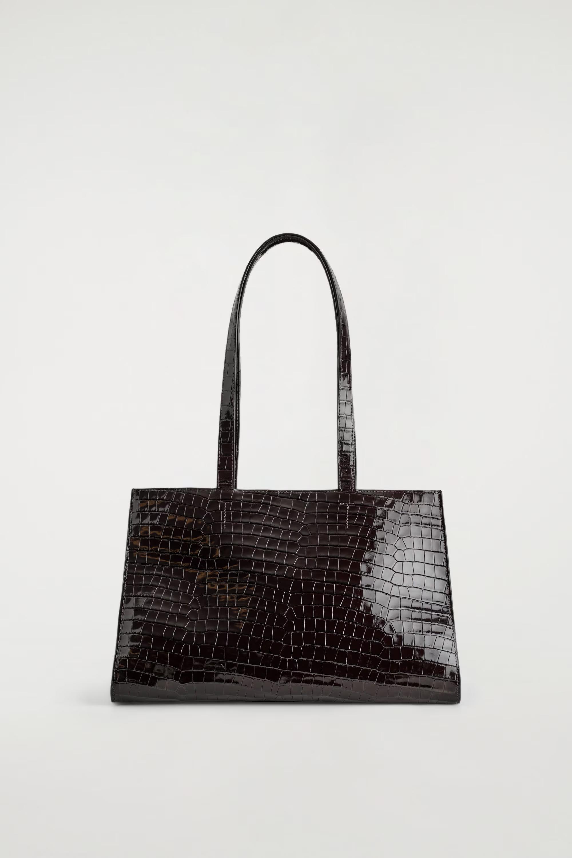 This season, the COS accessories designers channel a '90s sensibility through a modern lens. Crafted from polished croc-embossed leather, the Gallery tote has a refined east-west silhouette and features elongated leather shoulder straps and pockets inside for essentials. The sides are detailed with subtle darts that create a cinched shape.\u0026nbsp;Clip closureCOS supports responsible manufacturing via the Leather Working Group\u0026nbsp;\u0026nbsp;Shell: 100% Leather. Lining: 100% Organic cotton. Excluding trims\u0026nbsp;Height: 30.5cm, Width: 49cm, Depth: 19cm