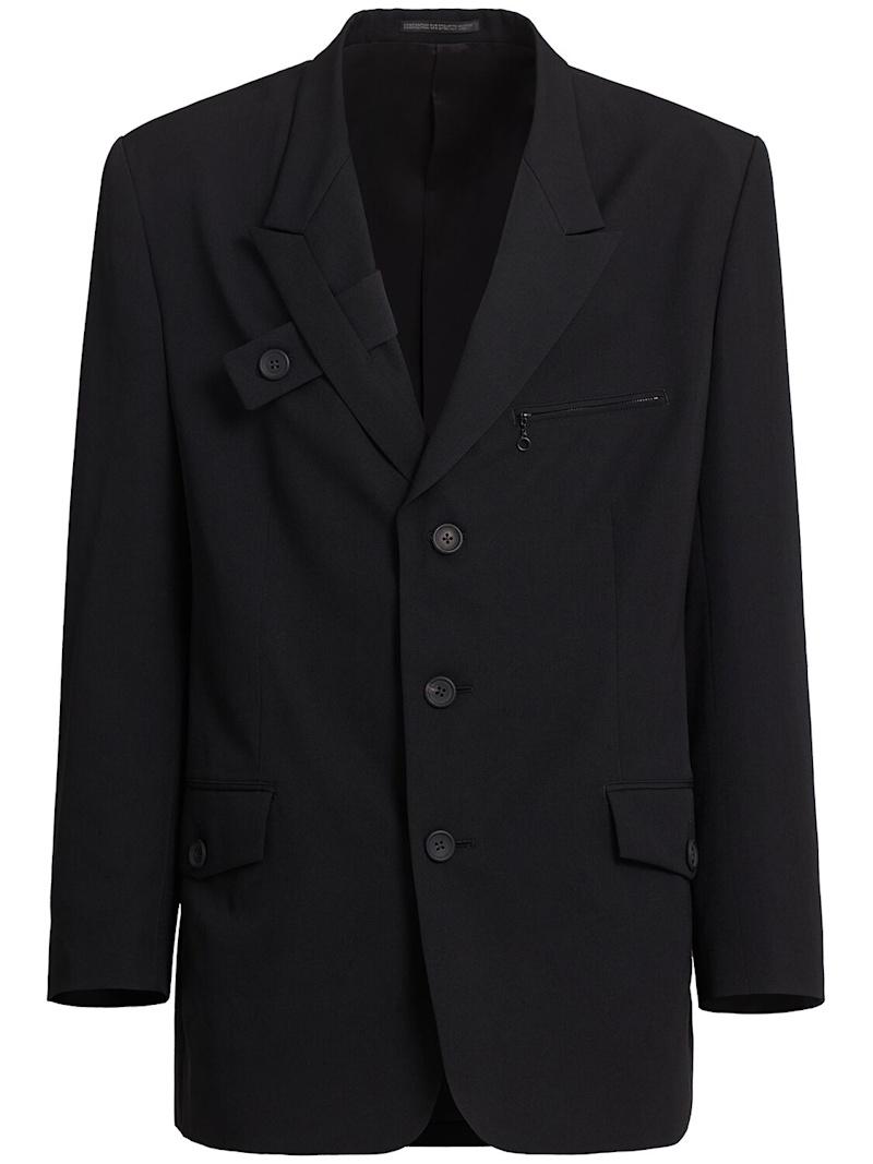 右侧袢带翻领夹克 - 黑色 - 男士 - 正面纽扣开合.