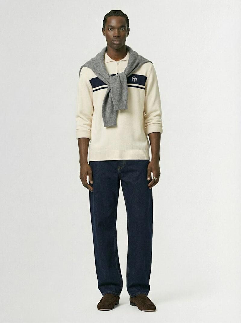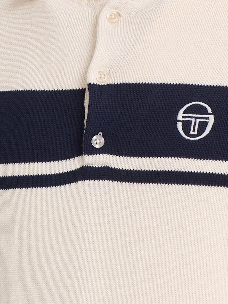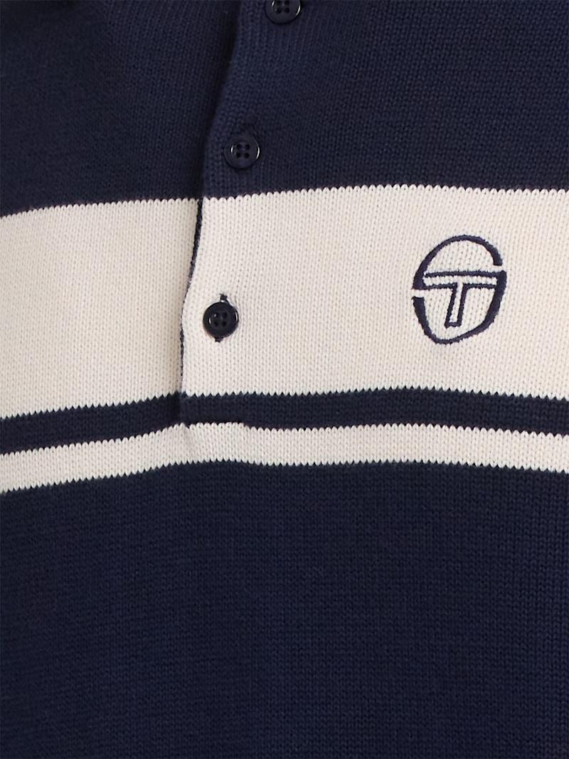 Damarindo长袖棉质针织POLO衫 - Blue/Gardenia - 男士 - Sergio Tacchini - 正面半开襟纽扣.