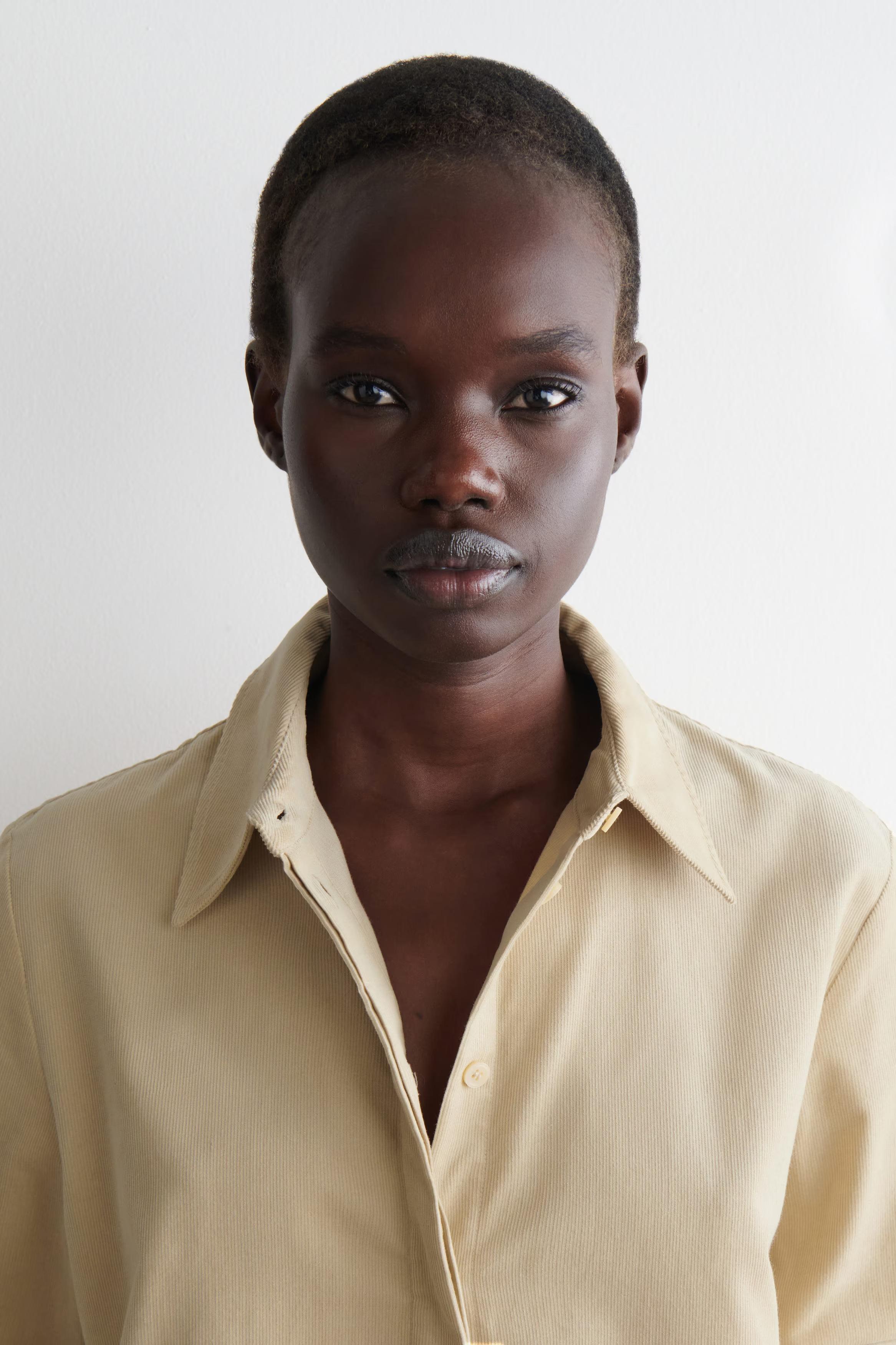 For Autumn Winter 2025, the womenswear designers reframe the classic shirt through rich materiality. This cotton-corduroy shirt comes in a muted beige tone that's effortless to style and features a pointed collar, concealed buttons and a curved hem.\u0026nbsp;\u0026nbsp;Regular fitButton closure\u0026nbsp;Shell: 100% Cotton. Excluding trims / Machine wash\u0026nbsp;Back length of size EU 36 is 72.5cm / Model wears a size EU 36