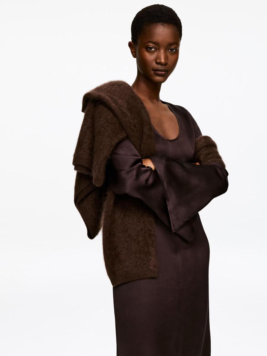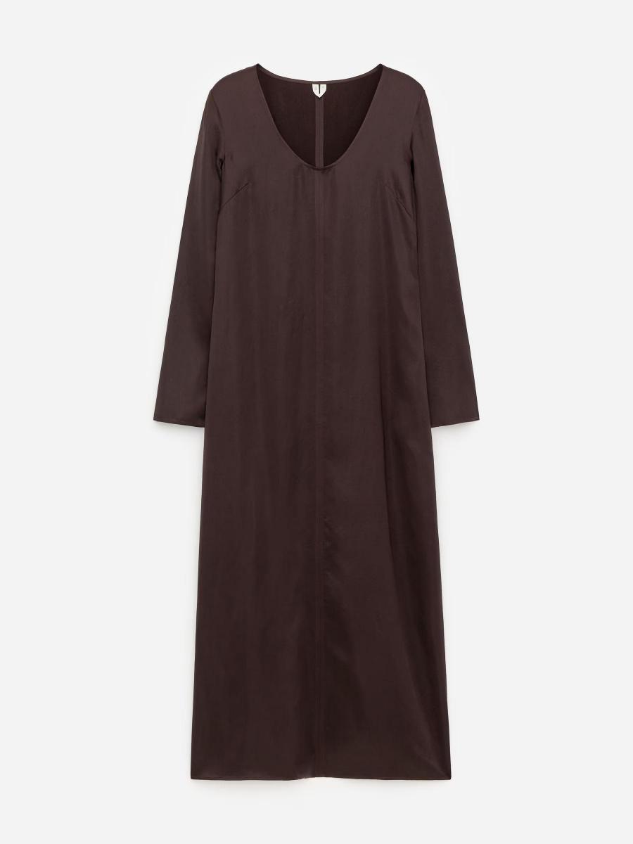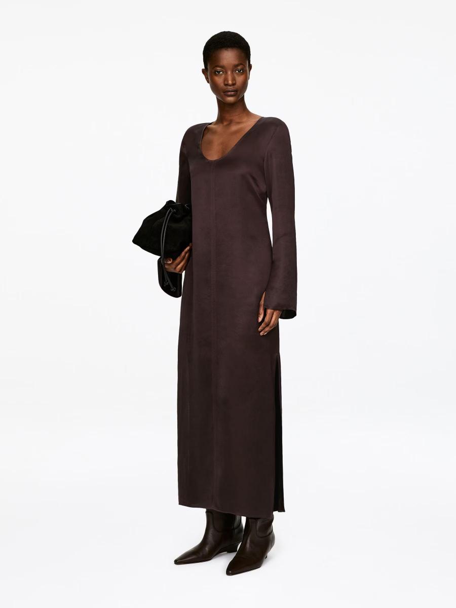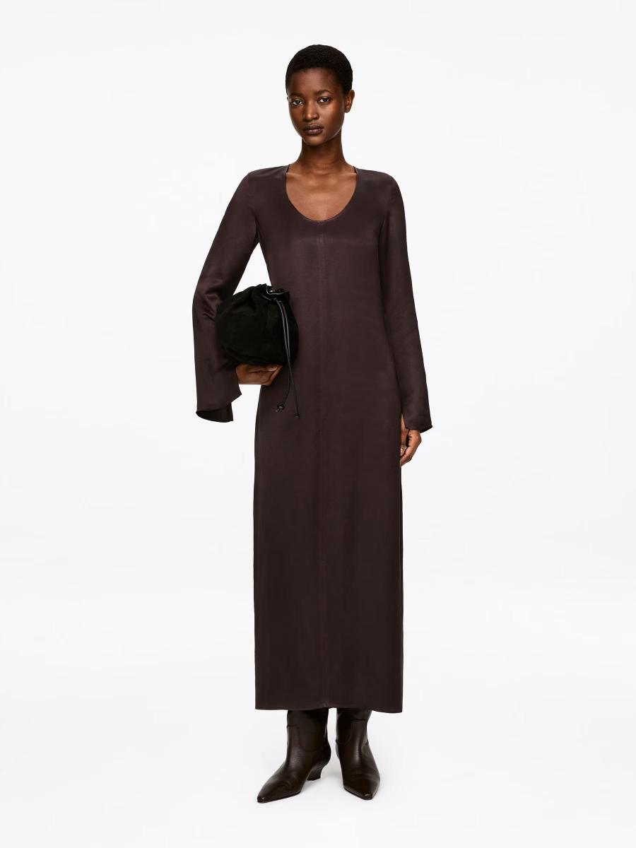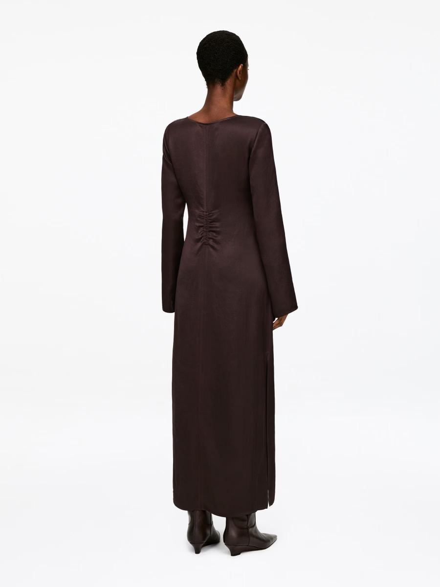 A full-length satin dress with a soft sheen, defined by an understated scoop neckline and long sleeves split at the cuffs.ARKET/Women's clothes/Women's dresses