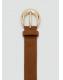 100% piel bovino. Piel de serraje. Diseño ovalado. Cierre de hebilla