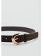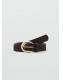 100% piel bovino. Piel de serraje. Diseño ovalado. Cierre de hebilla