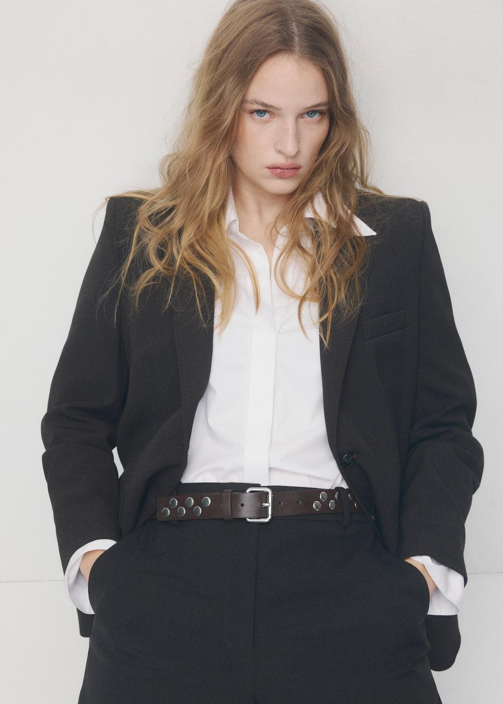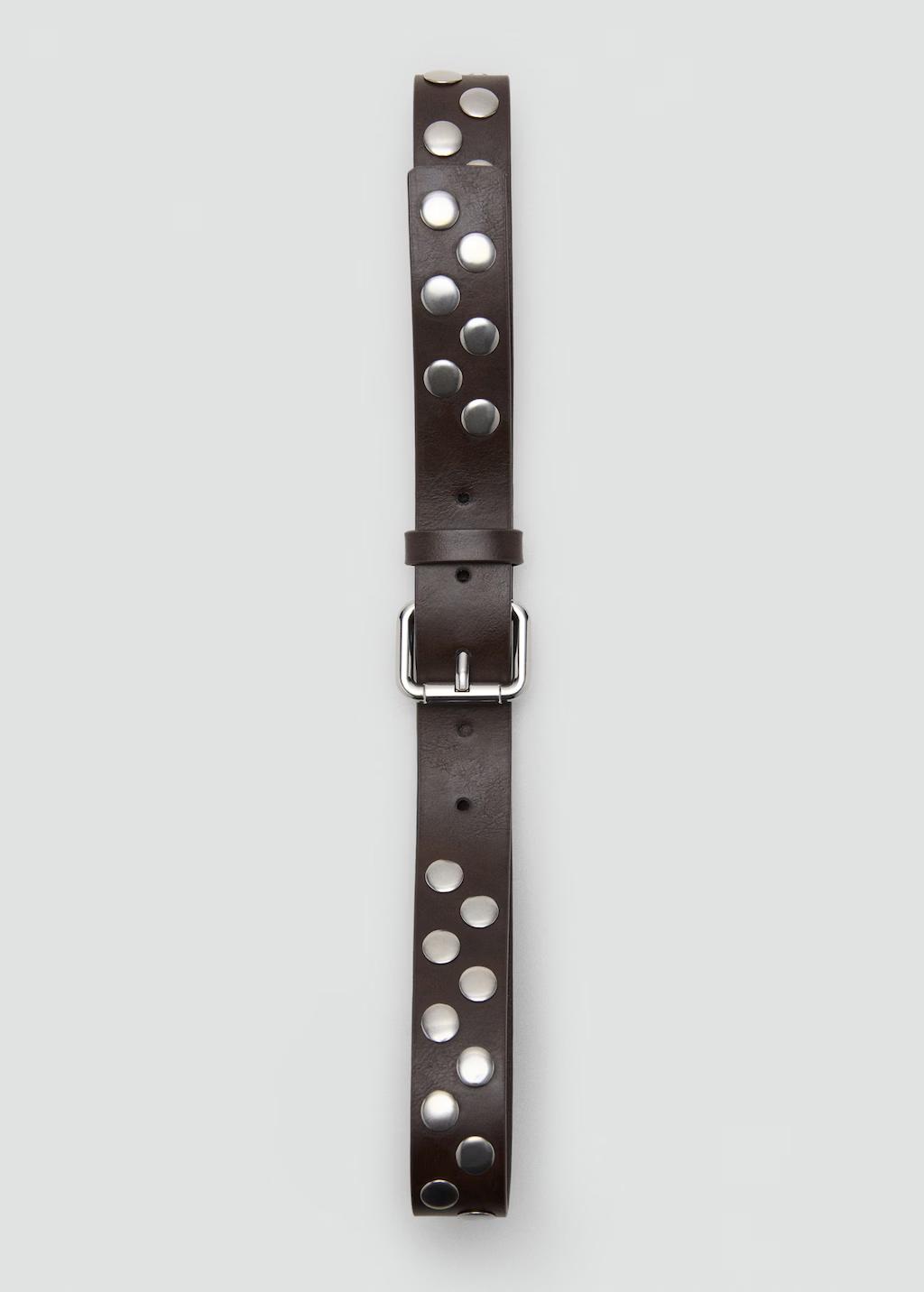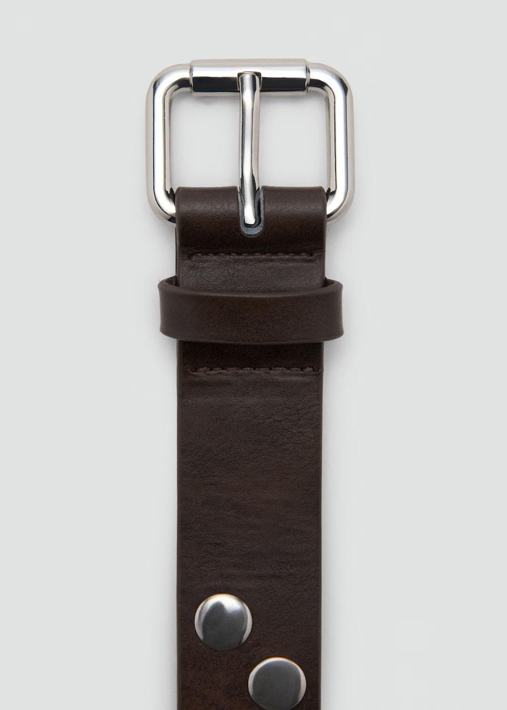 Efecto piel. Detalle de tachuelas. Cierre de hebilla cuadrada metálica