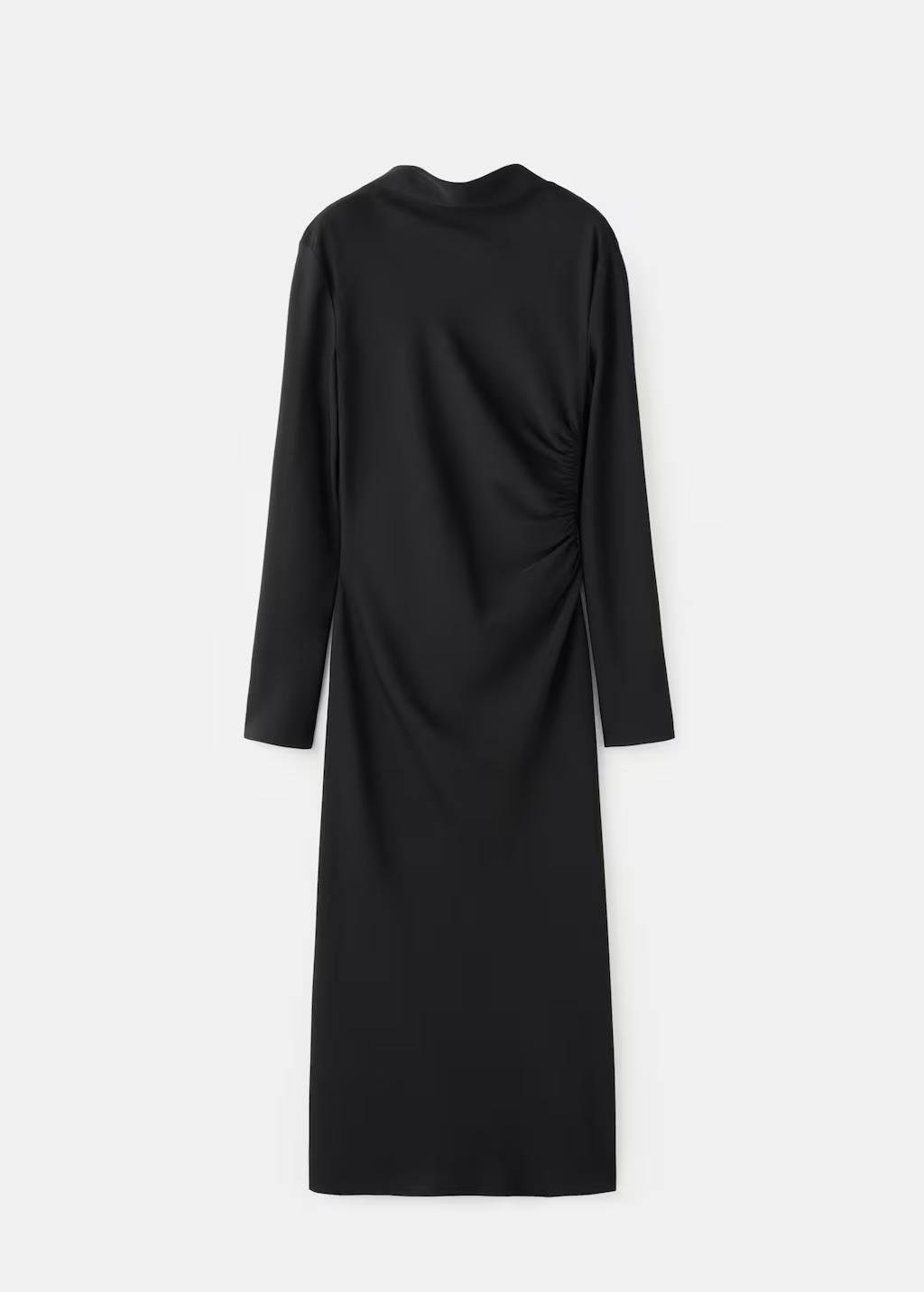 Diseño entallado. Diseño midi. Diseño evasé. Cuello redondo. Manga larga. Cintura fruncida. Disponible Plus. Cierre de cremallera en la parte posterior