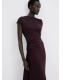 Diseño largo. Diseño recto. Detalle fruncido. Cuello asimétrico. Manga corta. Sin cierre