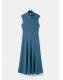 Diseño largo. Diseño recto. Cuello alto drapeado. Manga corta. Cierre de botón en el cuello. El color azul es exclusivo online