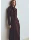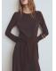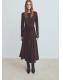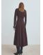 Diseño midi. Diseño evasé. Cuello redondo. Manga larga. Detalle godets. Cierre de cremallera en la parte posterior