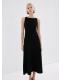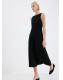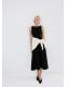 Diseño midi. Diseño evasé. Cuello redondo. Sin mangas. Detalle godets. Cierre de cremallera en la parte posterior