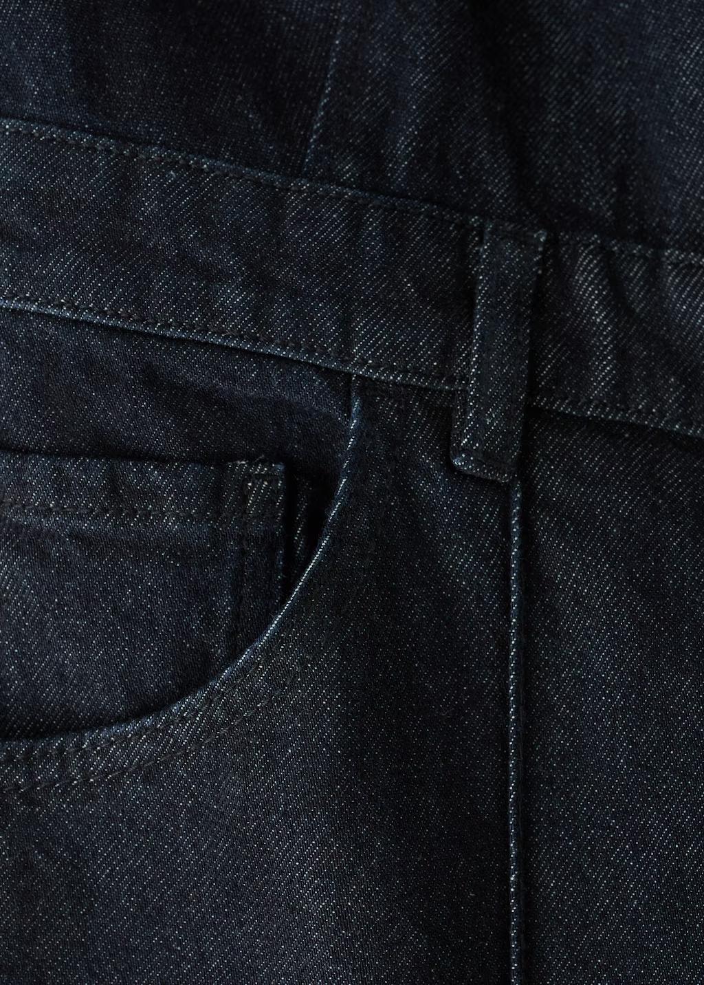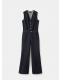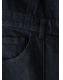 Tejido de algodón estilo tejano vaquero. Diseño largo. Diseño recto. Cuello pico. Sin mangas. Tirantes anchos. Trabillas. Cinco bolsillos. Cierre delantero con botones