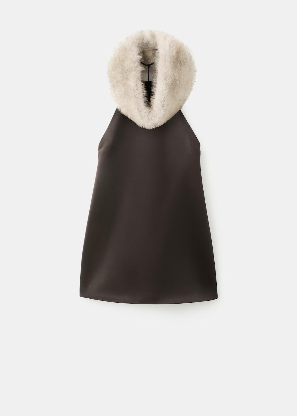 Este vestido es una muestra de sofisticación moderna, con un tejido de acabado satinado que aporta un brillo sutil y distinguido. Su diseño recto y sencillo favorece la silueta con una caída fluida, ideal para ocasiones especiales. La pieza se transforma con su cuello efecto pelo extraíble, que añade un toque glamuroso y acogedor, permitiendo personalizar el look según la ocasión. Tejido con acabado satinado. Diseño corto. Diseño evasé. Cuello halter. Tirantes finos ajustables. Espalda abierta. Cuello de efecto pelo extraíble. Cierre de hebilla de clip. Forro interior. Esta prenda pertenece a nuestra colección de fiesta y evento, diseñada para elevar tus looks en ocasiones especiales. Los artículos de la colección CAPSULE se pueden cambiar o devolver en un plazo de 14 días desde la fecha de envío. Capsule: una colección de prendas de edición limitada, hechas con los mejores tejidos y los máximos cuidados en el patronaje, para conseguir los mejores acabados. Esta colección, de carácter exclusivo, está pensada para los eventos y ocasiones más especiales