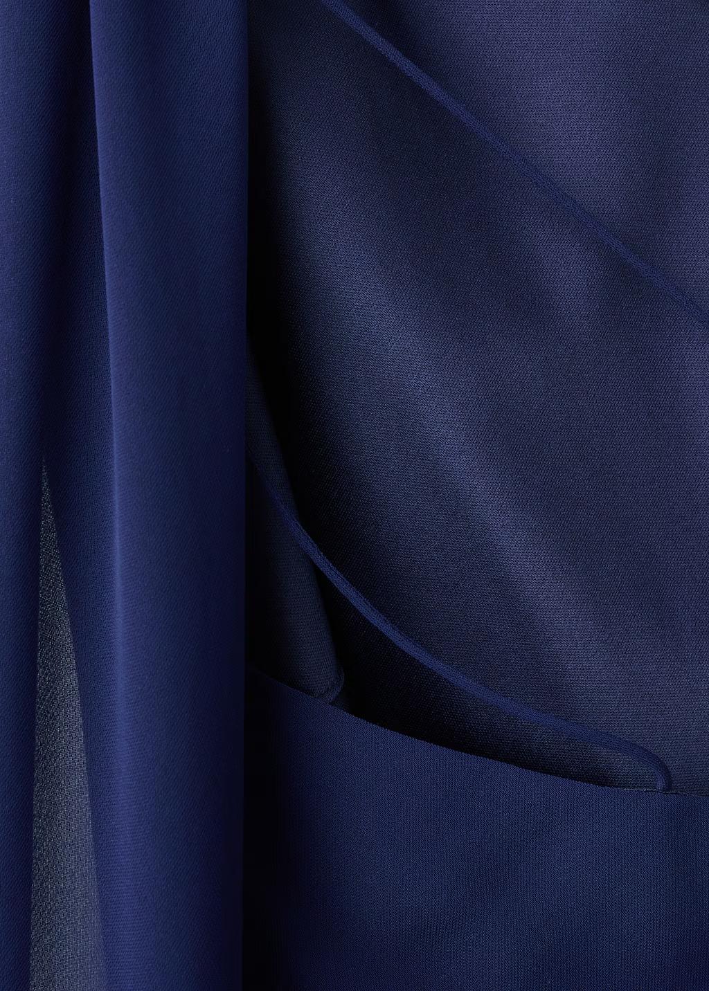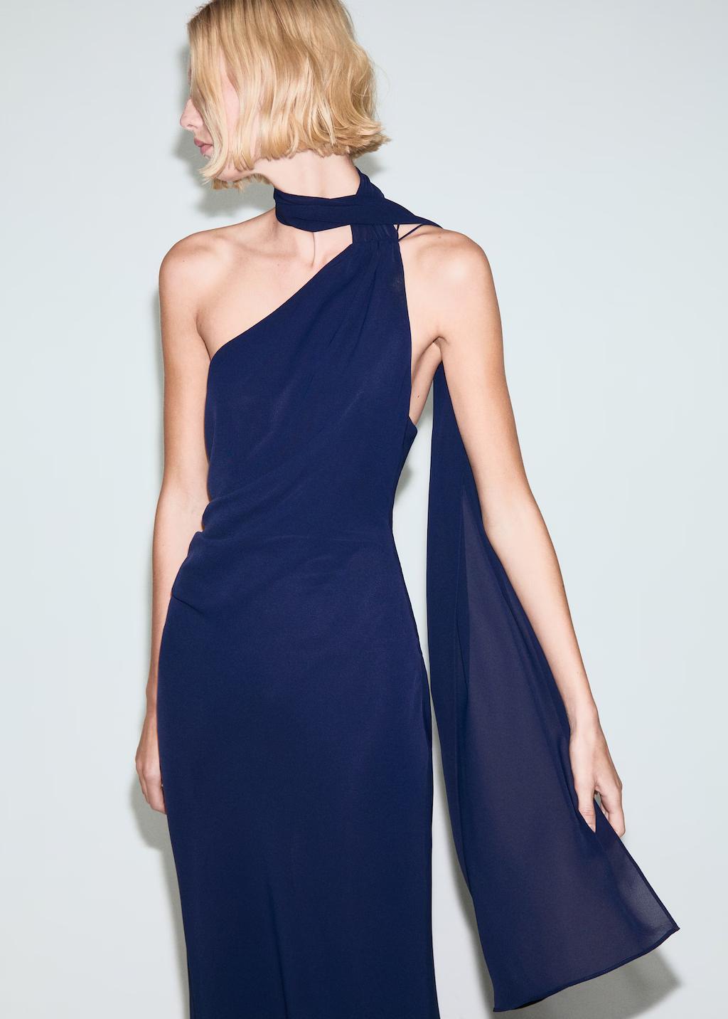 Diseño largo. Diseño recto. Cuello asimétrico. Adorno de fular en el cuello. Espalda abierta con tiras. Cierre de cremallera lateral. Forro interior. Exclusivo Online. Esta prenda pertenece a nuestra colección de fiesta y evento, diseñada para elevar tus looks en ocasiones especiales