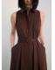 Tejido mezcla de algodón y lino. Diseño evasé. Diseño midi. Detalle bordado. Cuello camisero. Trabillas. Detalle cinturón en la cintura. Cierre de botones en la parte delantera