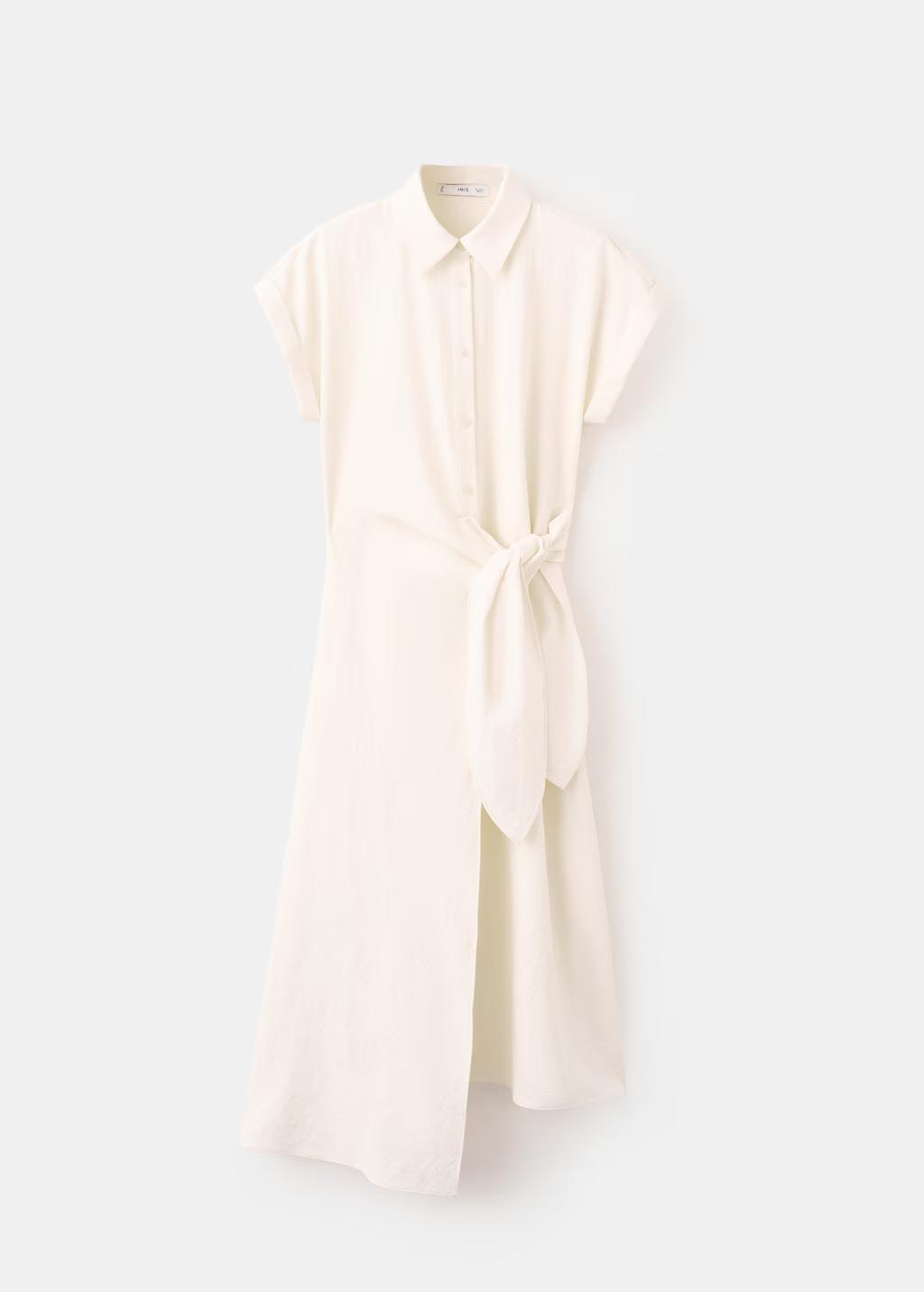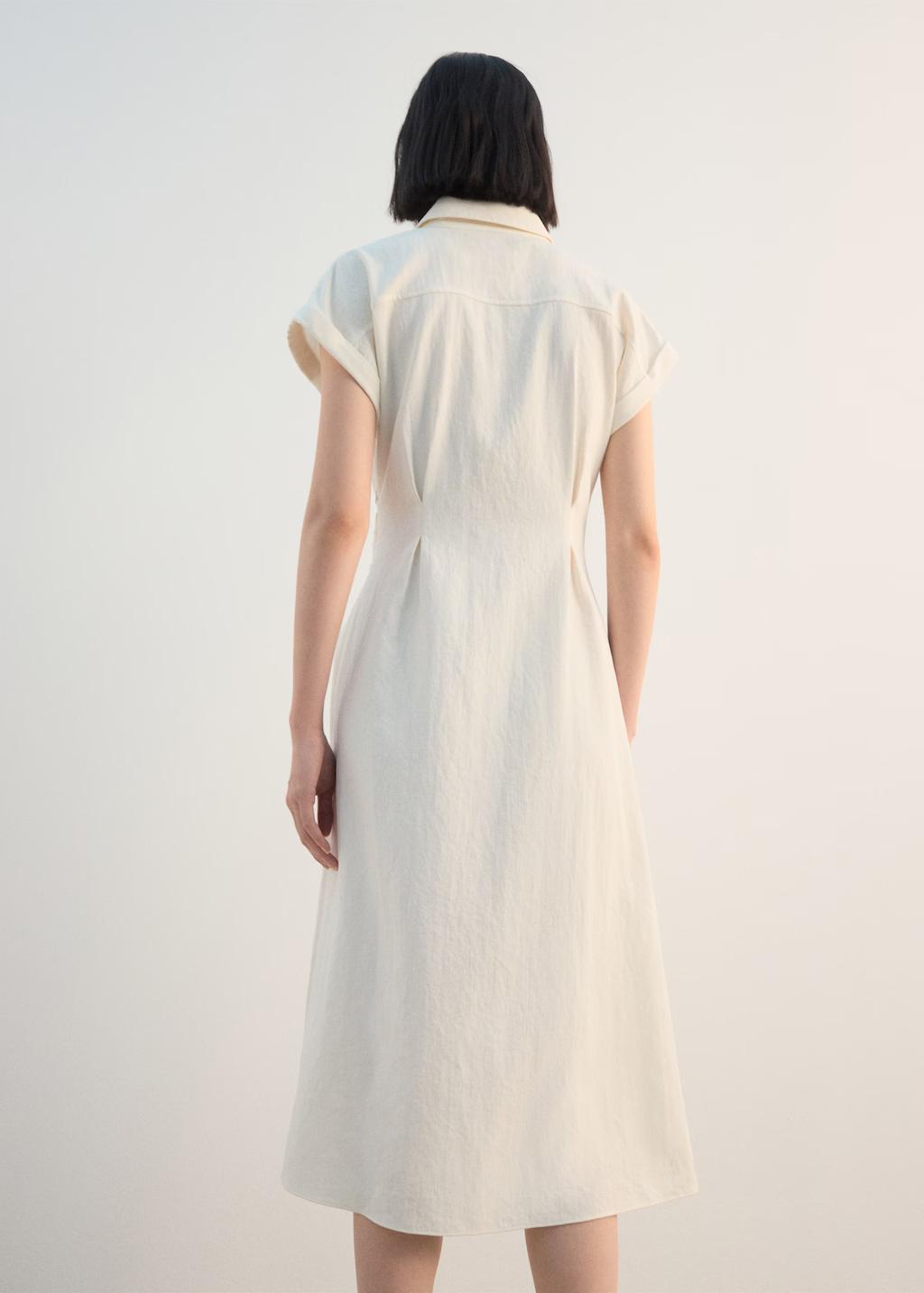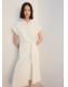 Estructura plana Ligero. Ubicacion cierre Cierre Delantero. Largo Midi. Cuello solapa Camisero. Silueta Evase. Largo manga Corta