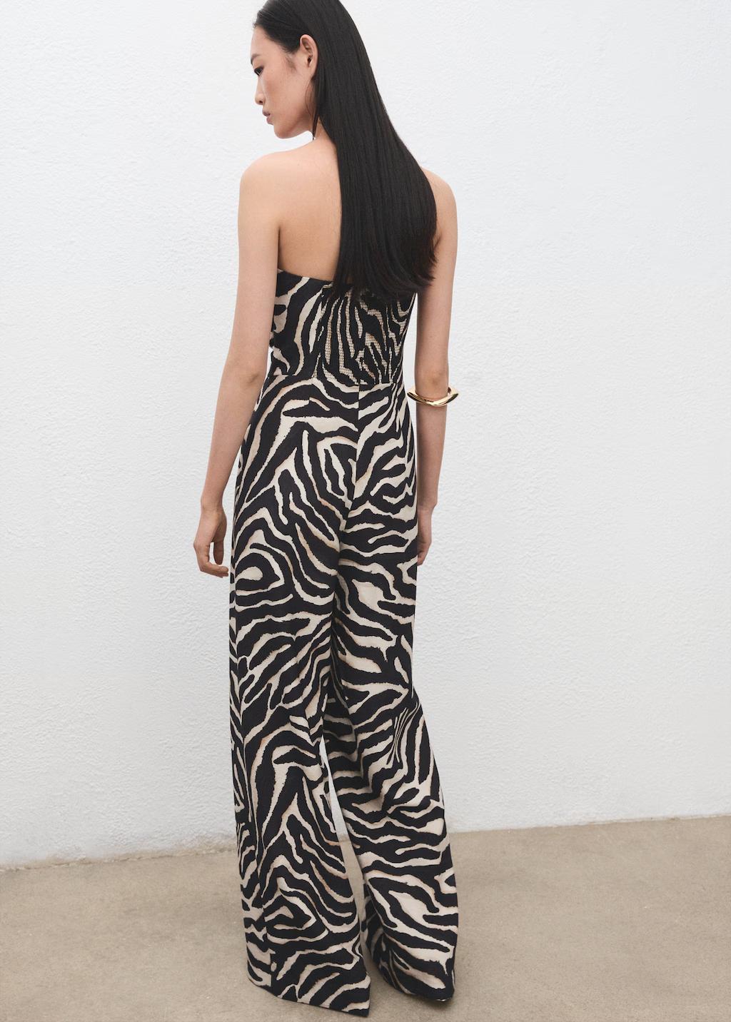 Diseño largo. Diseño recto. Estampado cebra. Palabra de honor. Sin mangas. Cierre de cremallera en la parte posterior. Forro de algodón. Esta prenda pertenece a nuestra colección de fiesta y evento, diseñada para elevar tus looks en ocasiones especiales