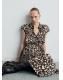 Diseño largo. Diseño recto. Diseño estampado. Cuello camisero. Sin mangas. Cinturón tipo lazo en la cintura. Cierre de botones en la parte delantera