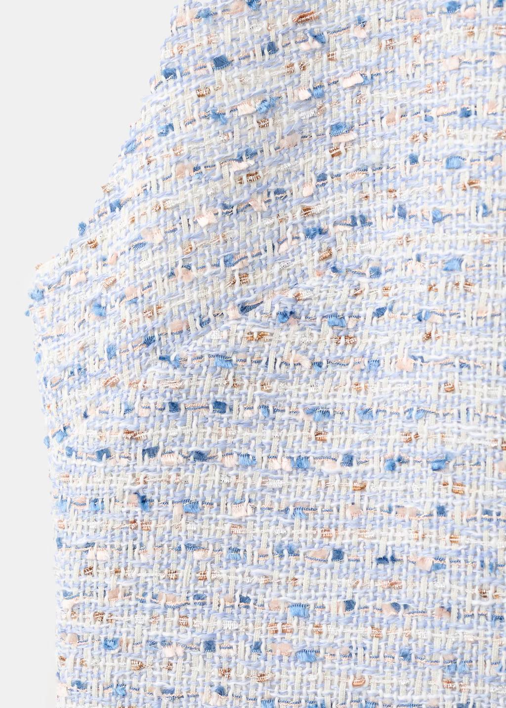 Tejido tweed. Diseño recto. Diseño corto. Detalle de abalorios en el cuello. Cuello redondo. Sin mangas. Tirantes anchos. Cierre de cremallera en la parte posterior. Forro interior