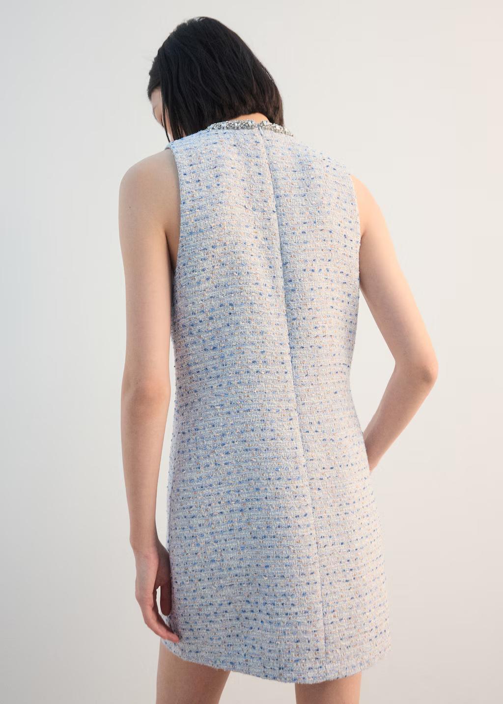 Vestido tweed cuello pedrería