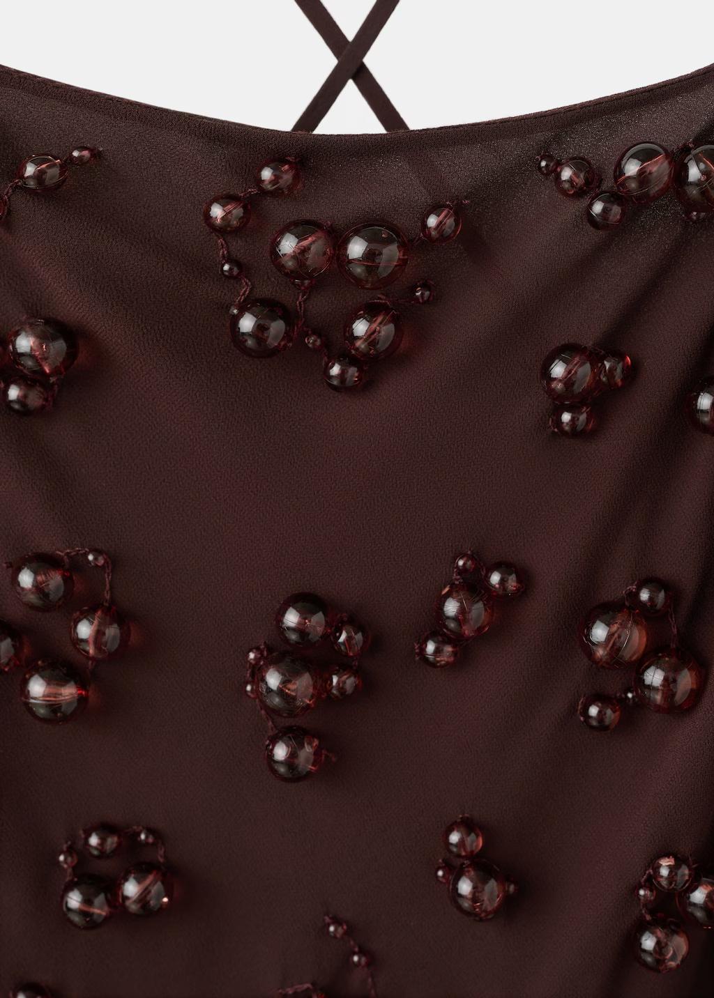 Esta pieza destaca por sus esferas bordadas a mano, que ofrecen un toque de lujo y sofisticación. El diseño meticuloso del bordado crea un efecto luminoso y texturizado, ideal para quienes buscan una prenda única y elegante. Tejido con esferas bordadas. Diseño entallado. Diseño maxi largo. Cuello escotado. Tirantes finos cruzados en la espalda. Cierre de cremallera lateral. Forro interior. Esta prenda pertenece a nuestra colección de fiesta y evento, diseñada para elevar tus looks en ocasiones especiales. Los artículos de la colección CAPSULE se pueden cambiar o devolver en un plazo de 14 días desde la fecha de envío. Capsule: una colección de prendas de edición limitada, hechas con los mejores tejidos y los máximos cuidados en el patronaje, para conseguir los mejores acabados. Esta colección, de carácter exclusivo, está pensada para los eventos y ocasiones más especiales