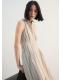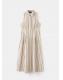 Tejido 100% algodón. Diseño midi. Diseño evasé. Estampado de rayas. Cuello camisero. Detalle fruncido en la cintura. Sin mangas. Cierre delantero con botones