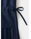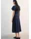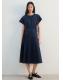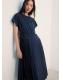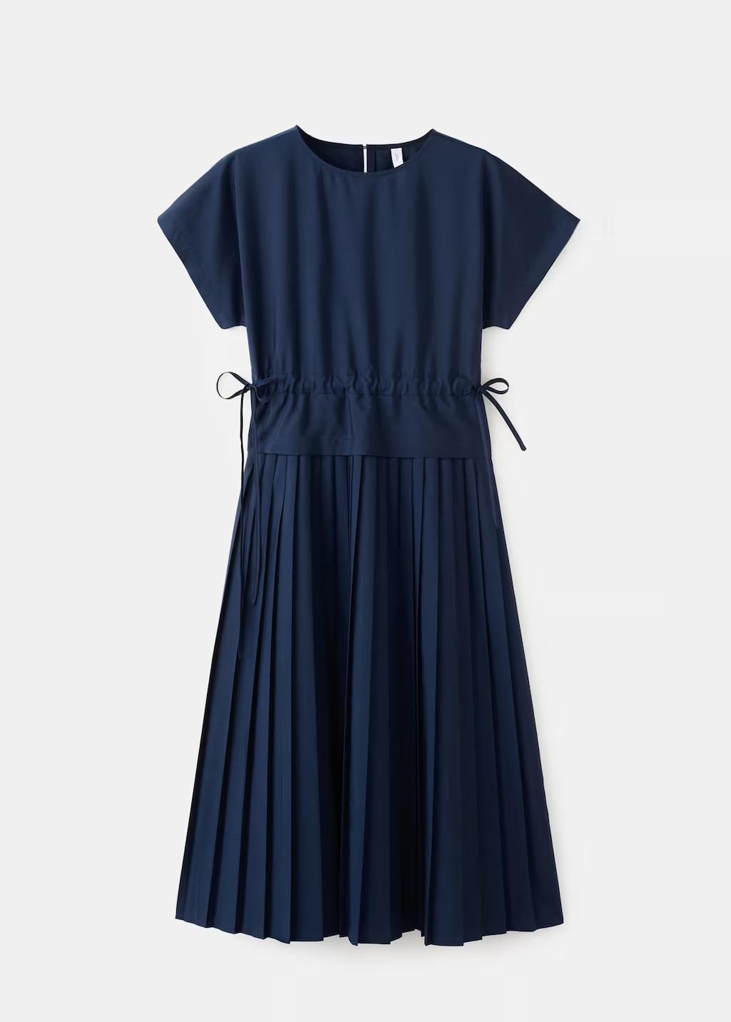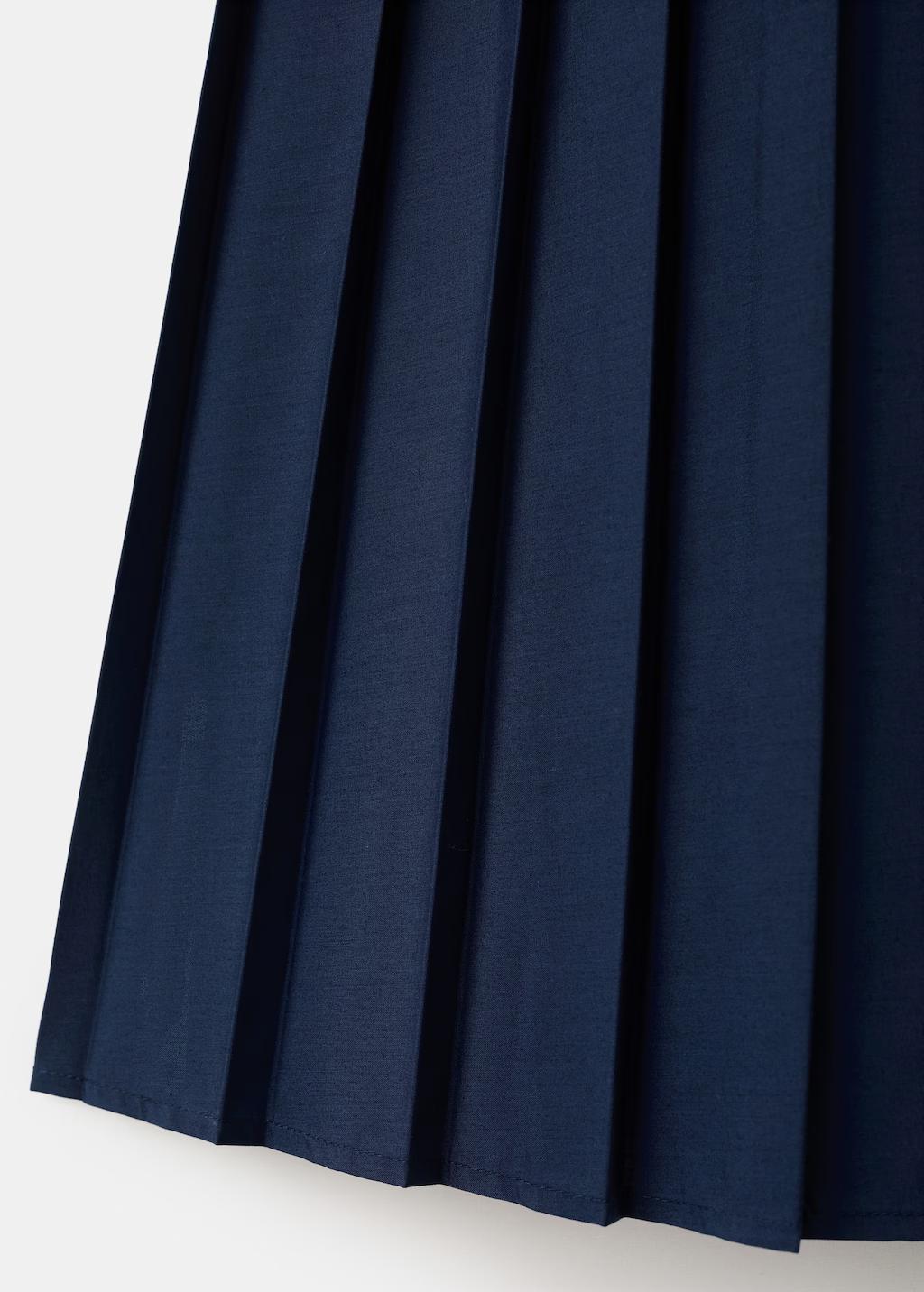 Diseño combinado. Diseño midi. Diseño evasé. Falda plisada. Cuello redondo. Manga corta. Cintura ajustable con goma. Cierre de botón en el cuello