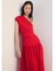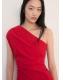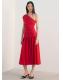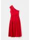 Tejido mezcla algodón y lyocell. Diseño midi. Diseño evasé. Cuello asimétrico. Sin mangas. Fruncido lateral. Cierre de cremallera lateral