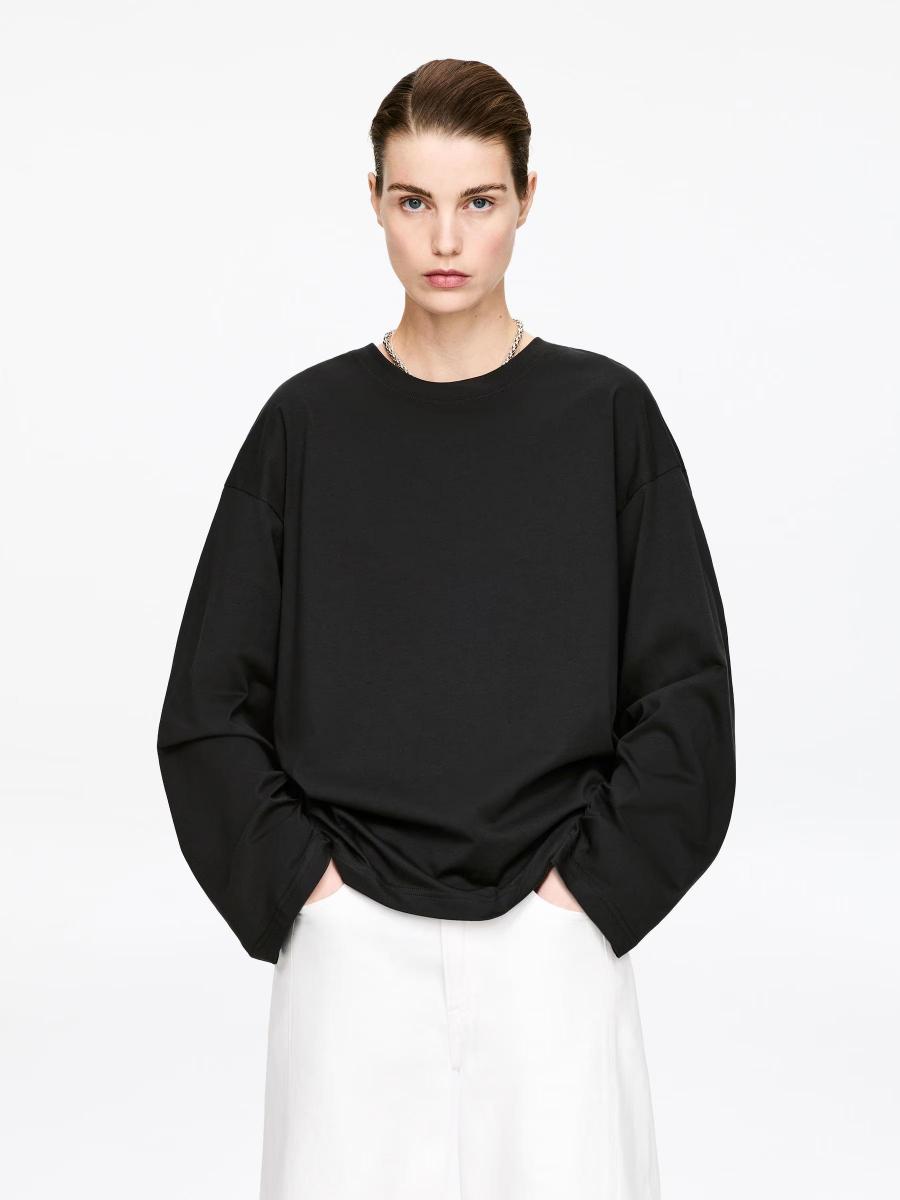 This oversized long-sleeve T-shirt is made from midweight cotton and washed for softness. Pairs with tailored trousers for a polished everyday look.ARKET/Women's clothes/Women's tops/Women's T-shirts