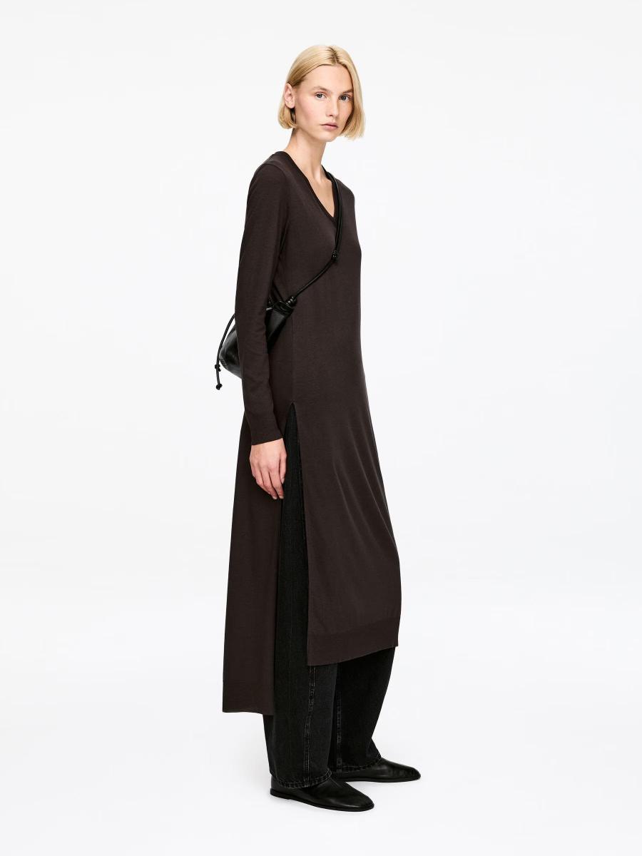 Designed to be worn with trousers, this tunic top features a V-neck, high side slits, and ribbed knit detailing. Cut longer at the back than the front, it is finished with a centre-back seam for a refined fit.ARKET/