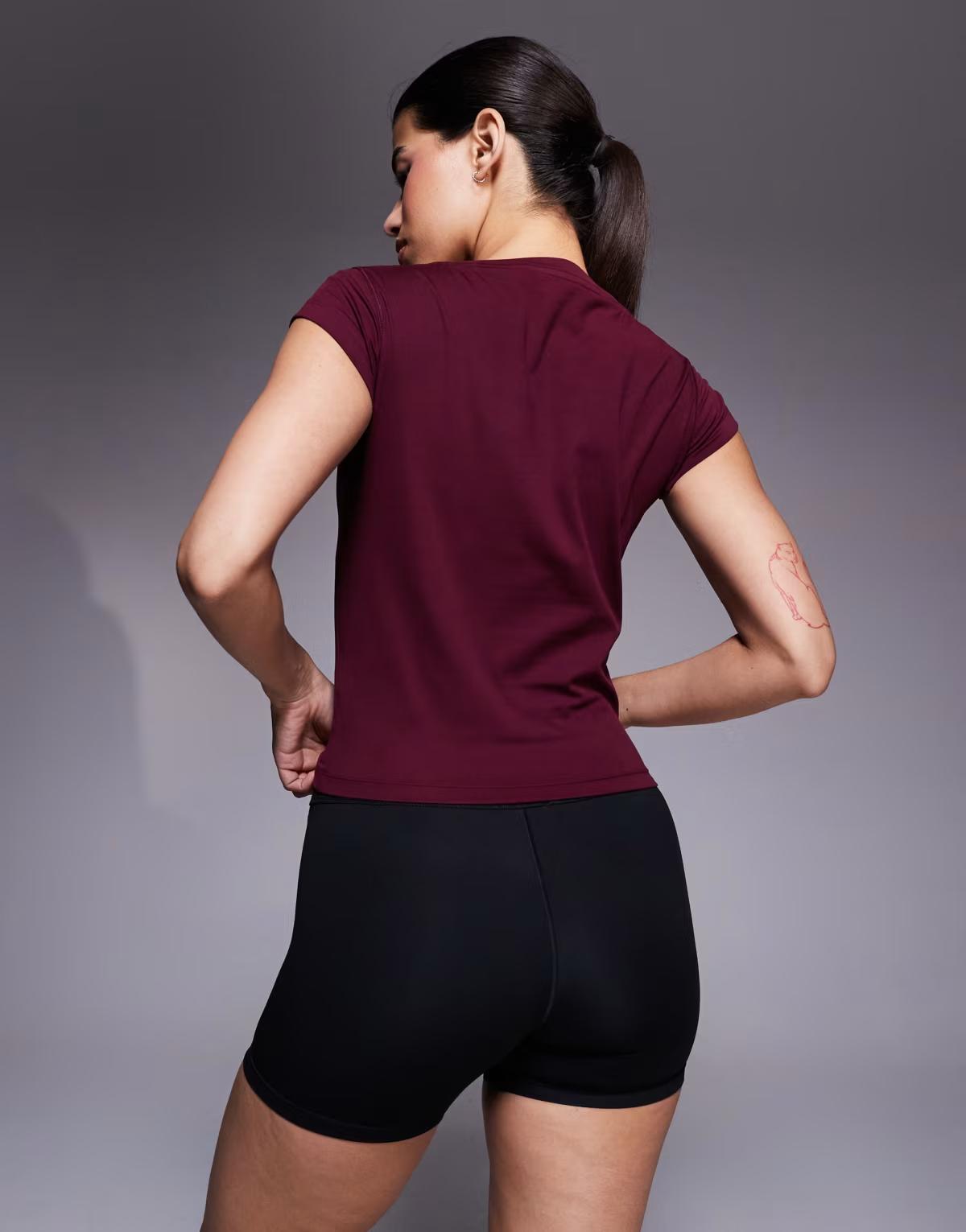 adidas Training Hyperglam baby tee in burgundy