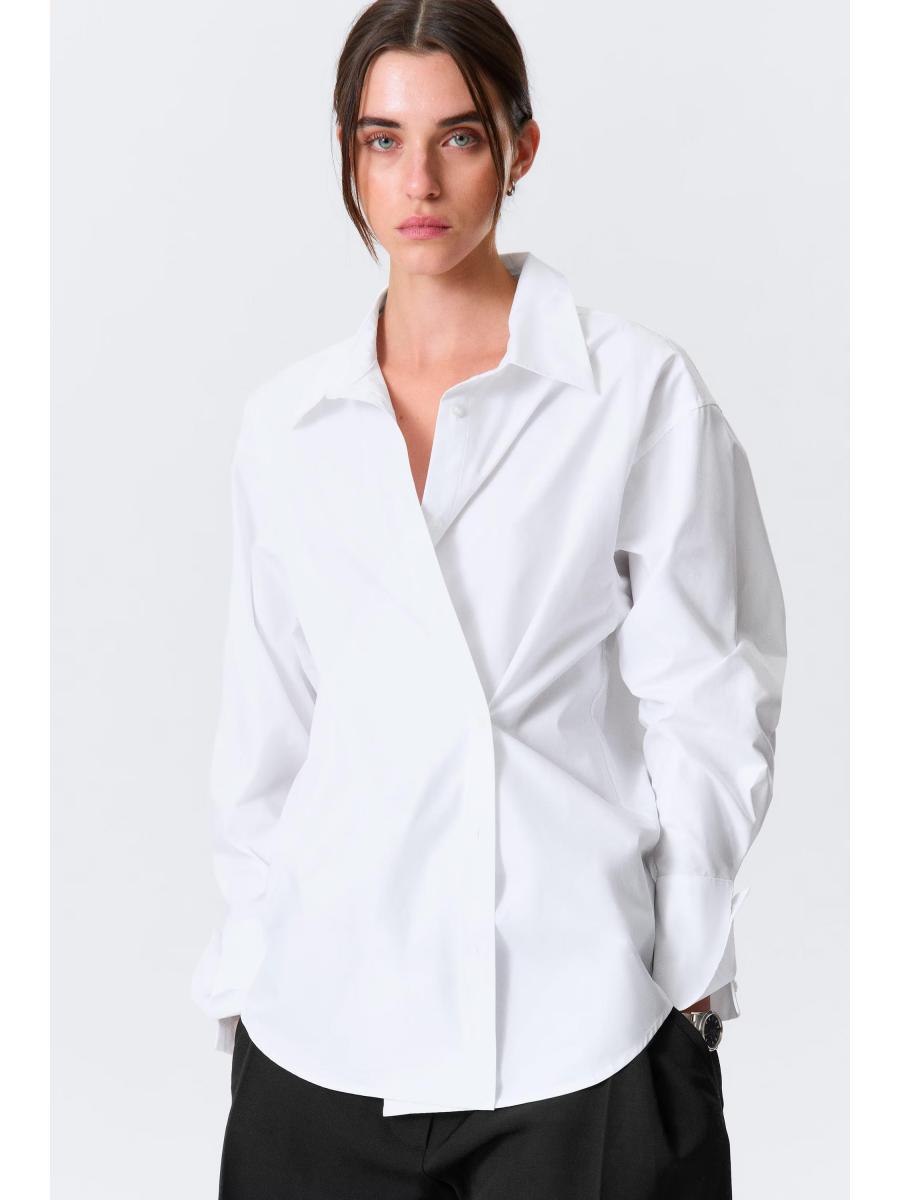 Cross-Buttoned Long-Sleeved Cotton Shirt