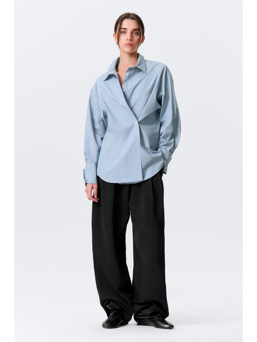 Cross-Buttoned Long-Sleeved Cotton Shirt