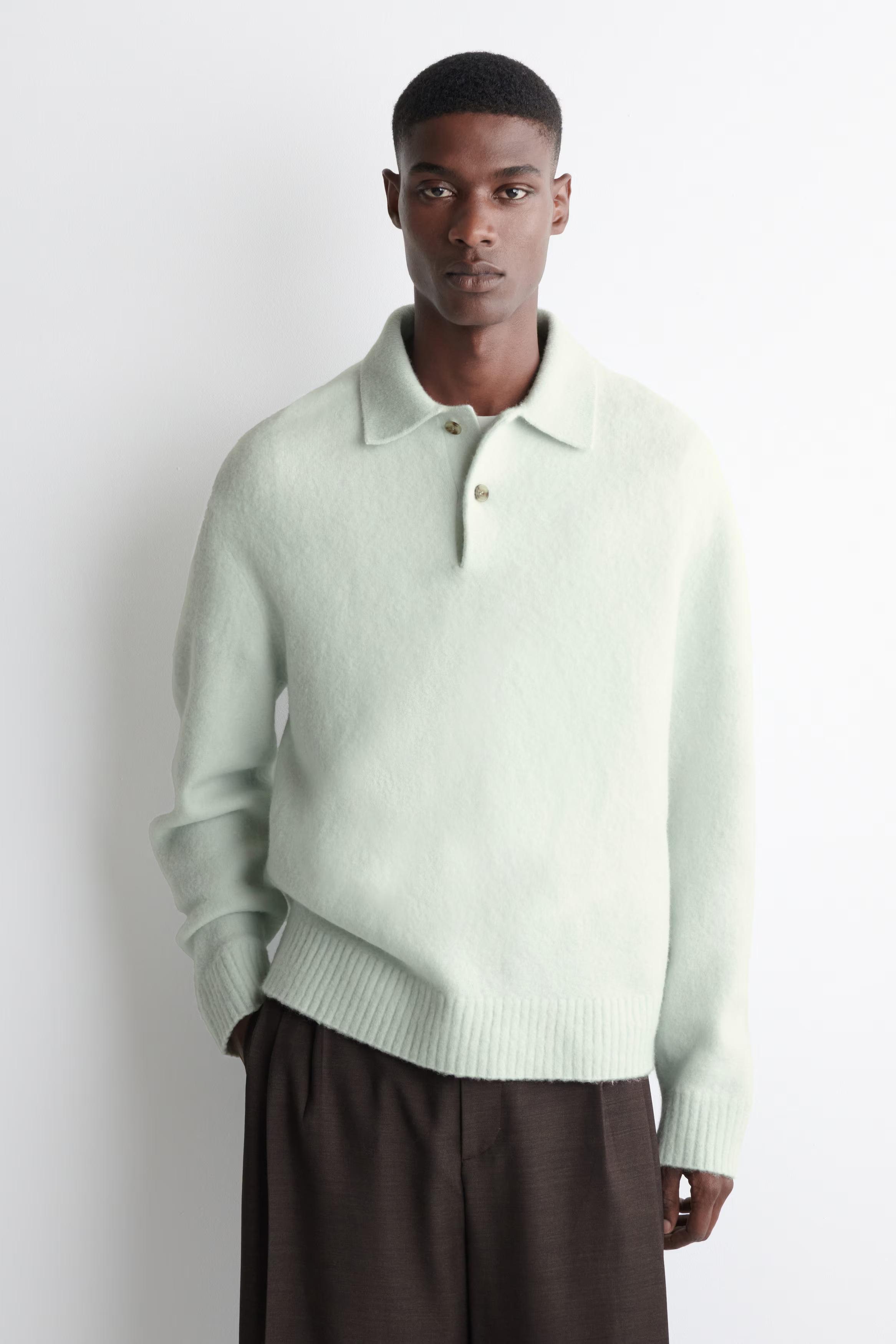 Texture and tactility are a focal point of this season's knitwear collection. Crafted from merino wool with a hint of yak, this polo shirt has a brushed surface that's soft in handle and a buttoned placket that can be styled open over a tee.\u0026nbsp;Relaxed fitButton closureThis product contains Responsible Wool Standard TE-00047206 (RWS) wool fibre from farms certified to animal welfare and land-management requirements\u0026nbsp;Shell: 60% Merino wool, 27% Recycled polyamide (Recycled nylon), 10% Yak, 3% Recycled elastane. Excluding trims / Dry clean\u0026nbsp;Back length of size M is 65cm / Model wears a size M
