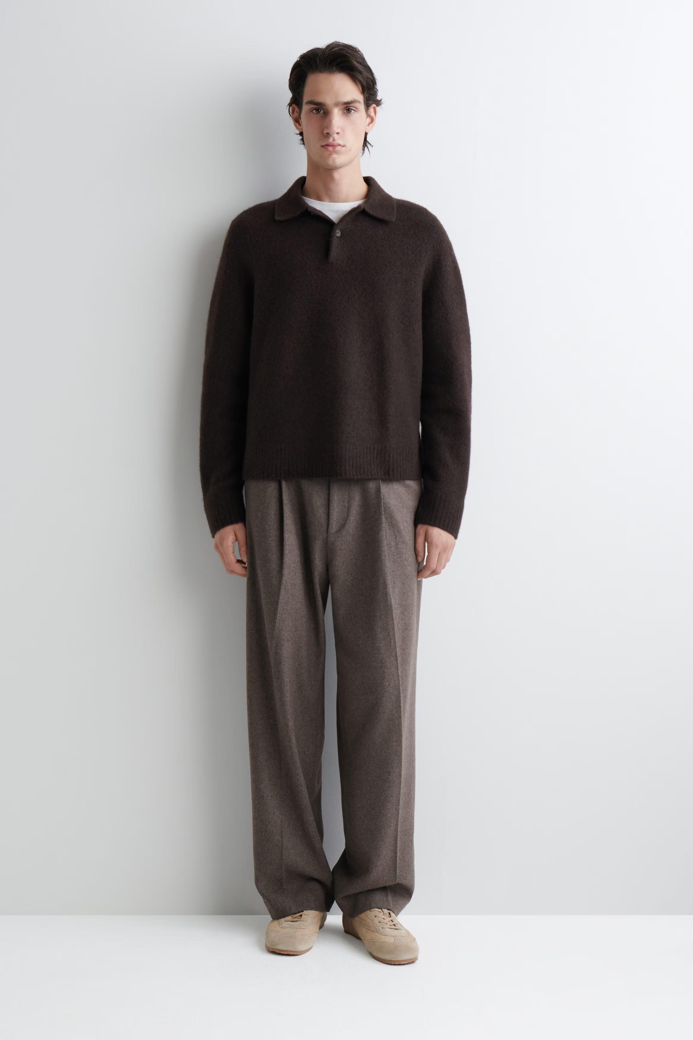 Texture and tactility are a focal point of this season's knitwear collection. Crafted from merino wool with a hint of yak, this polo shirt has a brushed surface that's soft in handle and a buttoned placket that can be styled open over a tee.\u0026nbsp;Relaxed fitButton closureThis product contains Responsible Wool Standard TE-00047206 (RWS) wool fibre from farms certified to animal welfare and land-management requirements\u0026nbsp;Shell: 60% Merino wool, 27% Recycled polyamide (Recycled nylon), 10% Yak, 3% Recycled elastane. Excluding trims / Dry clean\u0026nbsp;Back length of size M is 65cm / Model wears a size M
