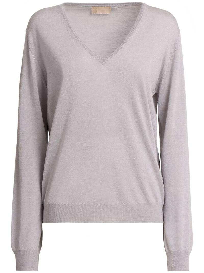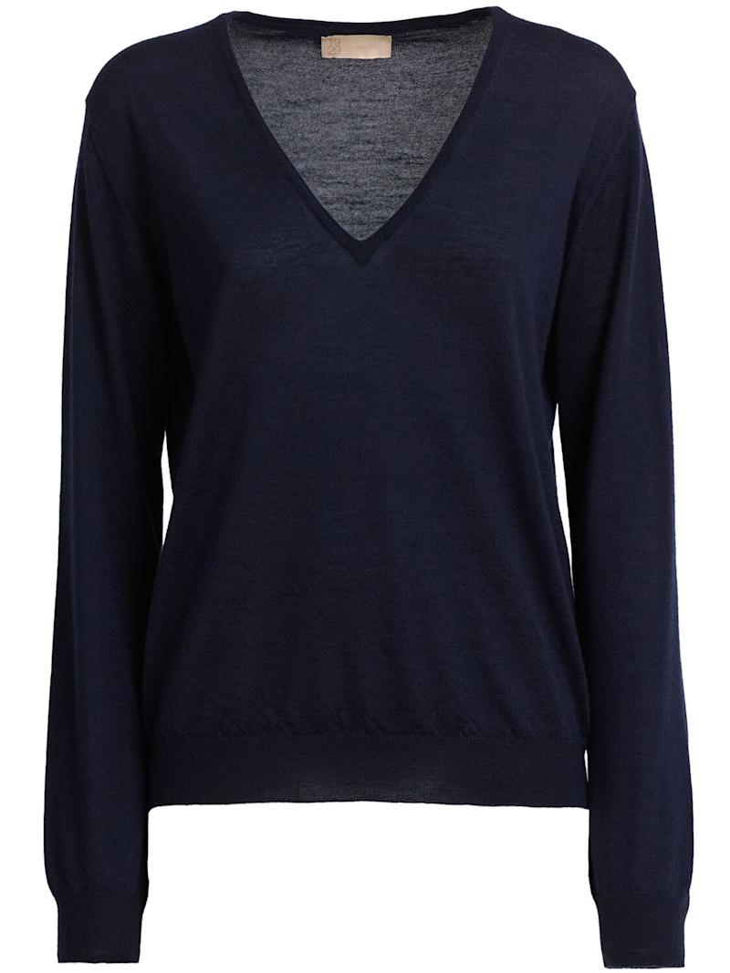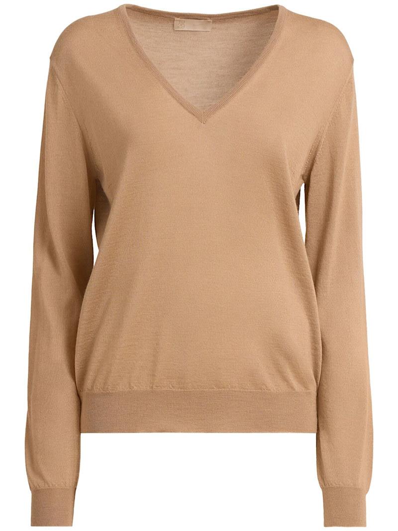 Lanzi羊绒&真丝V领毛衣 - 驼色 - 女士 - 1929 - Cariaggi超柔软羊绒和真丝混纺织物.
