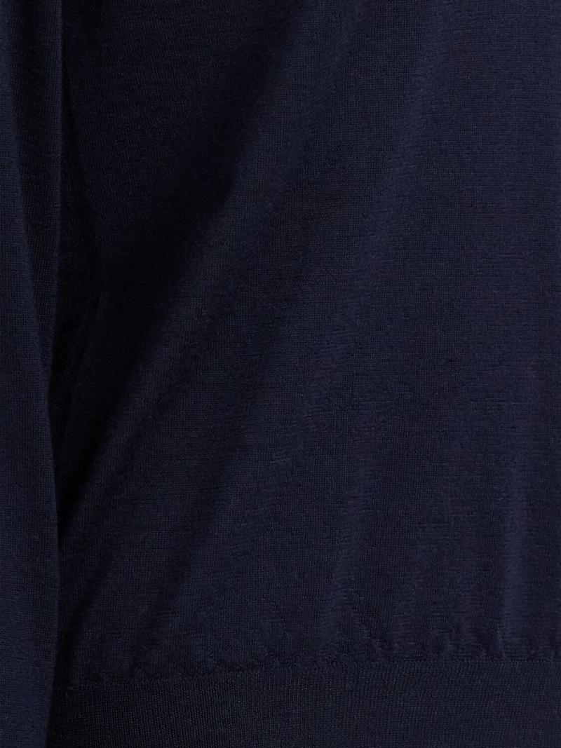 保养: - 为了保持柔软度和形状,我们建议: - 用专为羊毛或精细织物配制的温和清洁剂冷水手洗 - 请勿紧拧或扭曲衣物;相反,用干净的毛巾卷起衣服,挤出多余的水分。 - 平铺在干毛巾上晾干,趁湿润时轻轻重塑形状。避免阳光直射和热源。 - 如果需要,轻柔蒸汽去除褶皱—避免直接熨烫。 - 折叠存放在阴凉干燥的地方。 避免悬挂,因悬挂可能会导致变形。 - 对于长期护理,请考虑使用透气的服装袋和天然驱蚊剂。