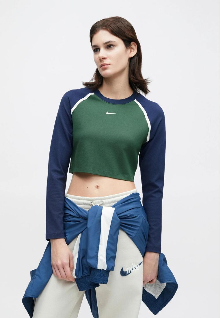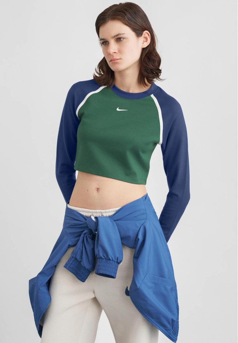 Nike Sportswear STREET BOLD CROP - Long sleeved top - fir/midnight navy/chalk/green - Zalando.co.uk