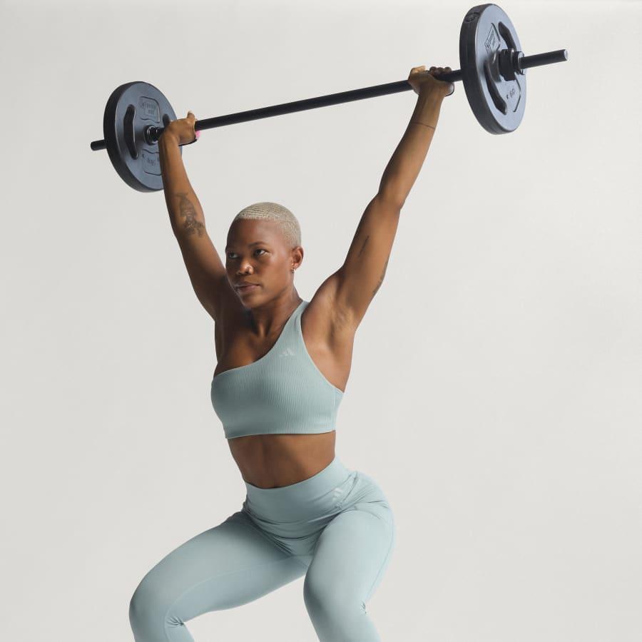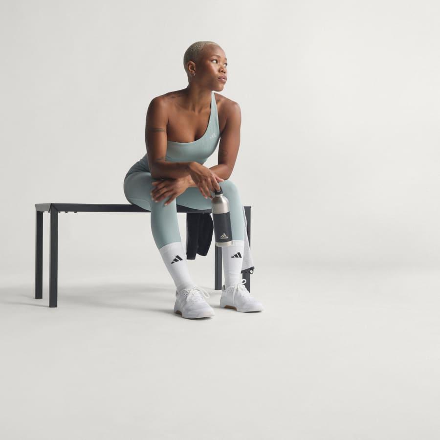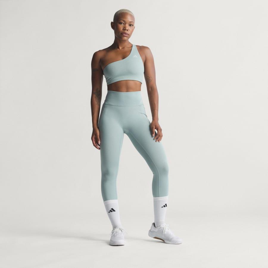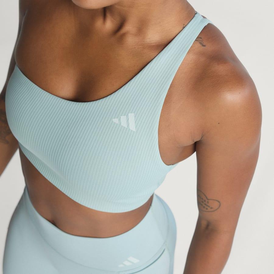 Light support","No closure","Shell: 79% polyester (100% recycled), 21% elastane; Lining: 88% polyester (100% recycled), 12% elastane; Bra pad - Outer: 100% polyester (100% recycled); Middle: 100% polyurethane; Inner: 100% polyester (100% recycled)","Fully lined","One shoulder","ADIMOVE technology","Removable padding","Sweat-wicking and quick drying"