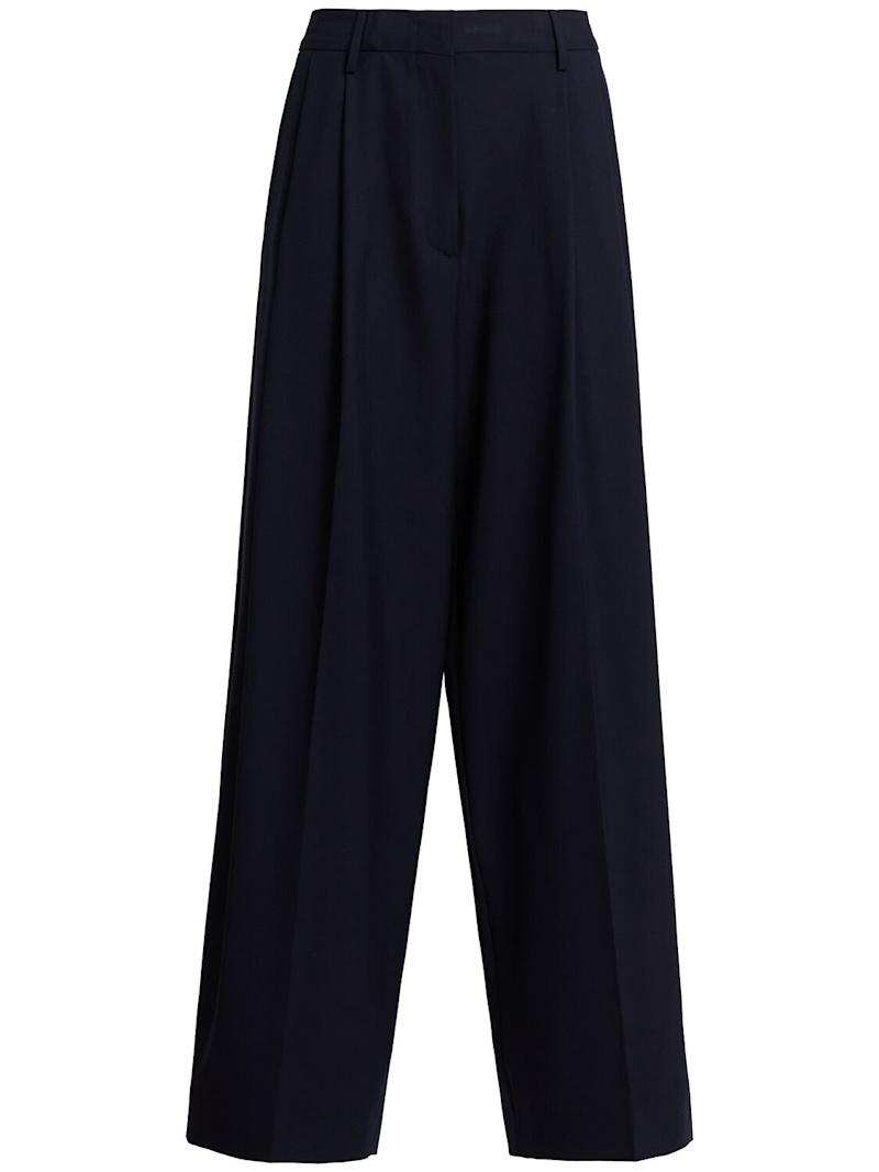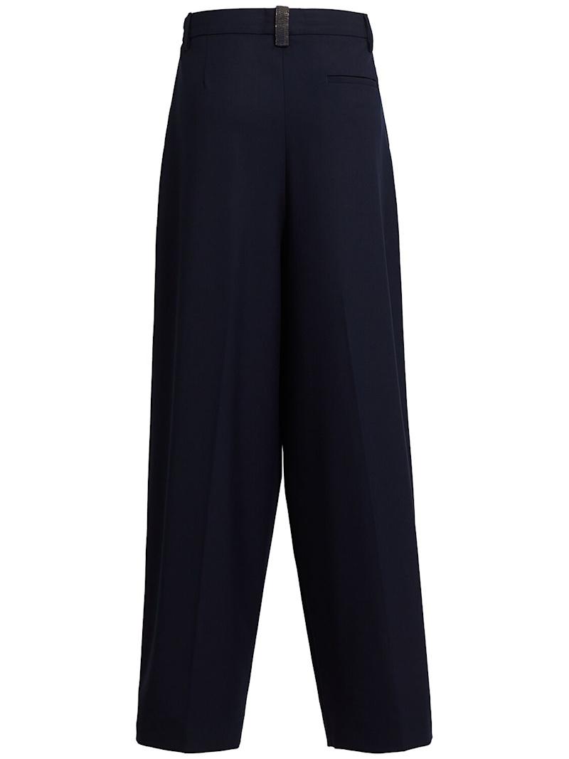 聚酯混纺精裁阔腿裤 - 海军蓝 - 女士 - Fabiana Filippi - 隐藏式正面粘扣开合.