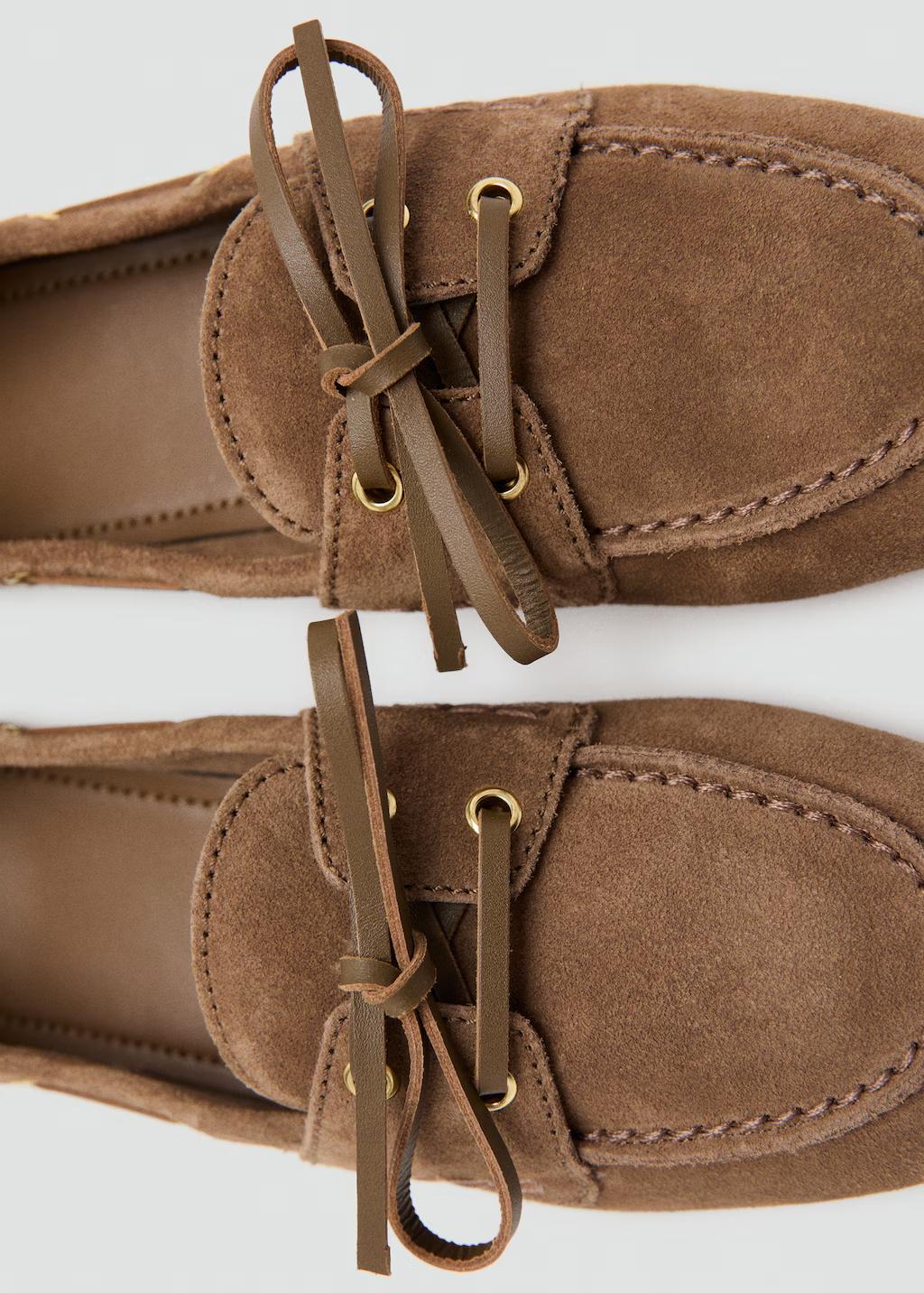 100% piel bovino. Piel de serraje. Punta redonda. Detalle de lazo. Sin cierre