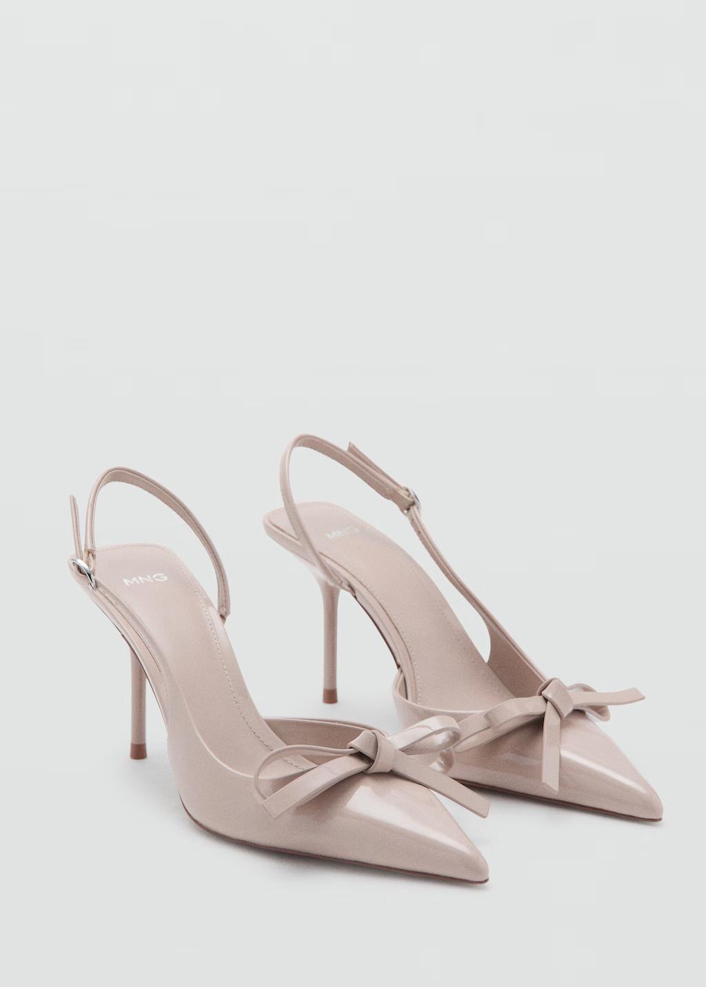 Efecto charol. Diseño destalonado. Detalle de lazo. Con punta. Tacón de aguja. El tacón mide 9 cm. Cierre de hebilla. Forro interior