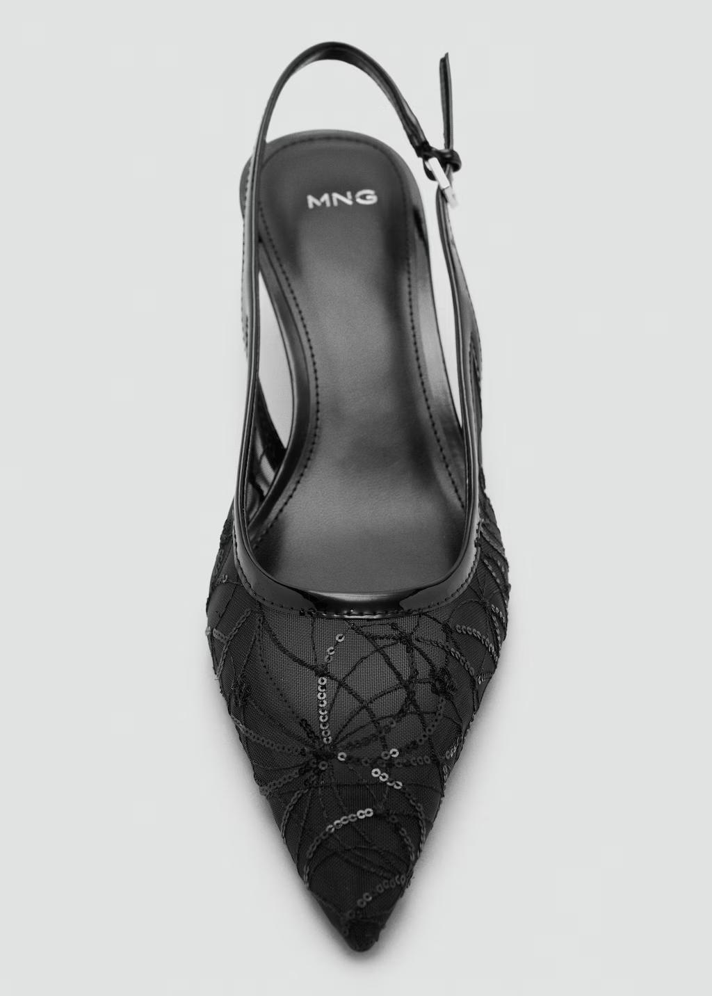 Con punta. Bordado de lentejuelas. Tacón kitten. Destalonado. Cierre de hebilla. El tacón mide 5 cm
