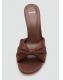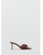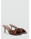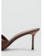 Tejido satinado. Puntera abierta. Diseño destalonado. Diseño de lazo. Tacón de aguja. El tacón mide 7,5 cm
