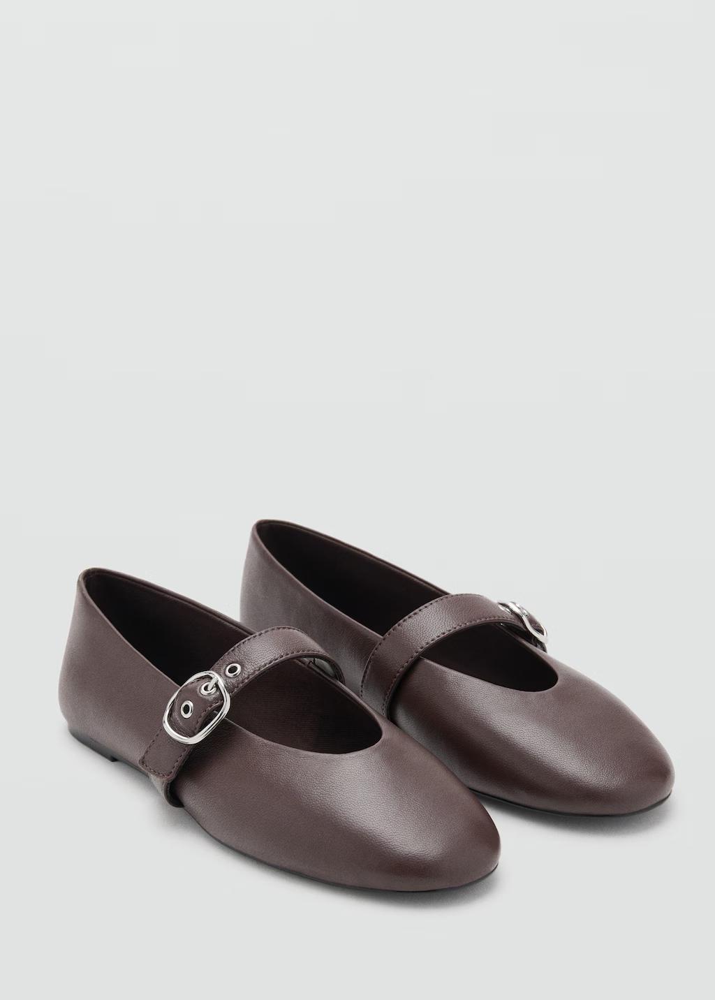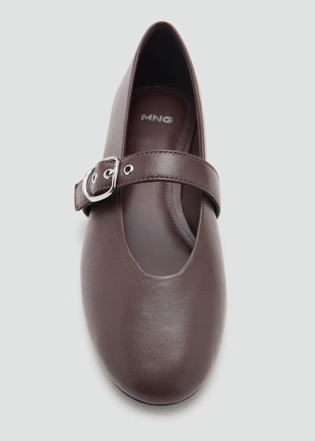 100% piel ovino. Flat. Punta redonda. Cierre de tira con hebilla. Forro interior