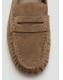 100% piel bovino. Piel de serraje. Punta redonda. Detalle de antifaz en el empeine. Detalles fruncidos. Sin cierre