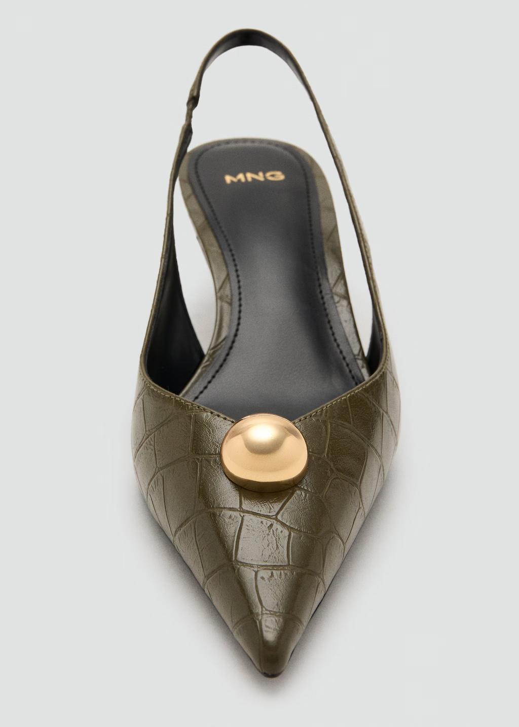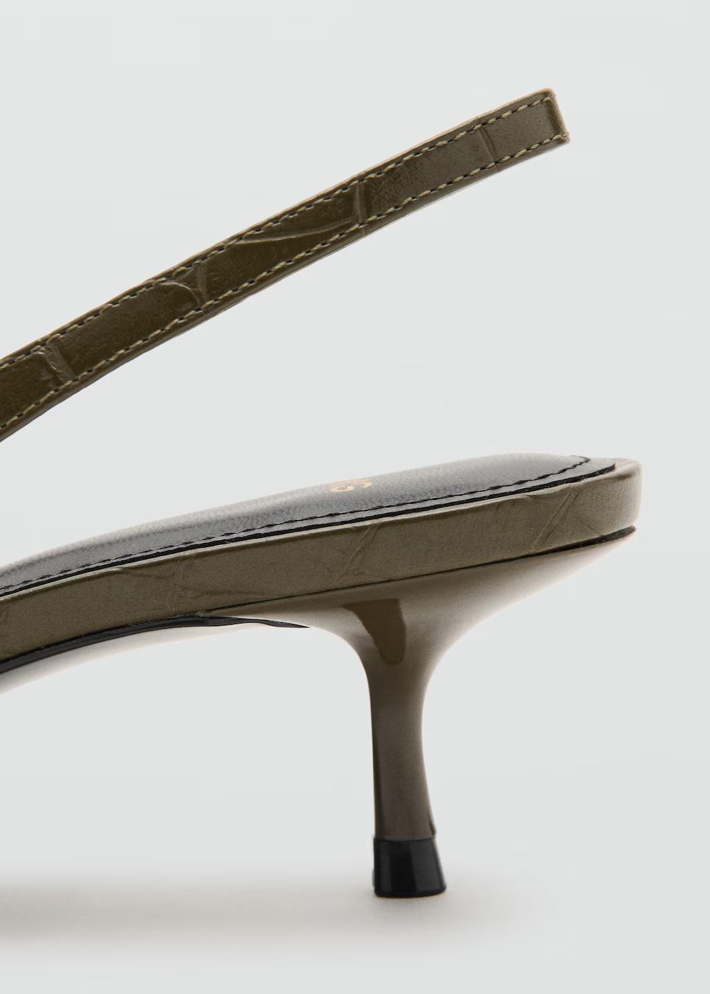 Efecto piel de cocodrilo. Con punta. Tacón kitten. Cierre de tira. El tacón mide 4,5 cm